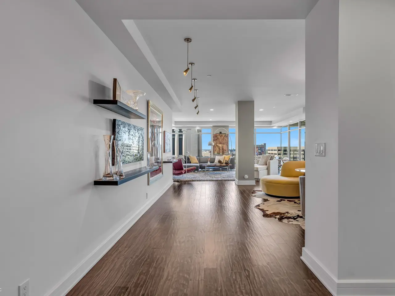 THE premier location in downtown Indy combined with unmatched expansive views makes this a MUST see property. Three bedrooms and two and 1/2 baths sets the stage for sophisticated living at its finest. Your journey begins: exit the secure elevator on the 8th floor, walk down the well decorated (and quiet) hallway to your oasis in the sky. As you enter this magnificent unit, you are first awed by the incredible views! You then turn your focus to the tastefully done lighting and wall mount display racks (art lover REJOICE!!!). The living/dining/breakfast areas are your personal canvas for creating distinct zones for relaxation and entertainment! The kitchen offers true functionality for all your culinary creations with an oversized island with seating for four. Step outside to the northwest facing patio to enjoy endless sunsets, incredible downtown views and oh btw - there is NO better view of the 500 festival parade that literally travels right below your feet! Three well appointed and well designed bedrooms are the perfect retreat for family and guests alike. The primary suite (perfectly located within the unit) features a huge walk-in closet, custom wall coverings and well positioned lighting to ensure peace and tranquility when it's time to retire. The primary bathroom is a spa lovers dream with dual sinks, a large walk-in shower and an oversized tub that is that is just what the doctor ordered after a great workout or long day at the office. The two guest bedrooms (one features a Murphy bed) share an J&J bathroom with dual sinks, oversized walk-in shower and a water closet. The art-deco 1/2 bath is ideally located for easy access. The utility/laundry room features plenty of space for full sized w/d units. Two assigned parking spots - ideally located right next to the pedestrian exit of the garage. This one of a kind property truly offers the best of all worlds. Located literally steps from Mass Ave and an easy walk to all that downtown offers, it is a MUST see.