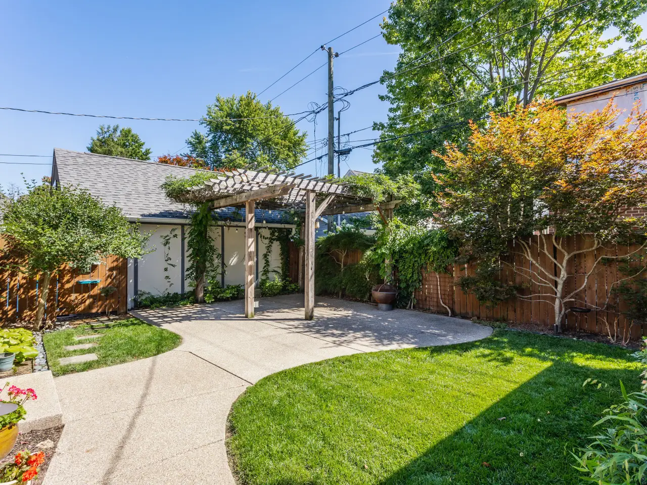 Wood pergola in private backyard