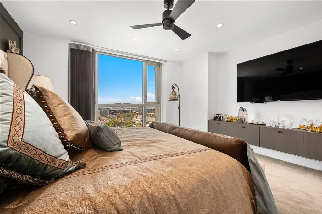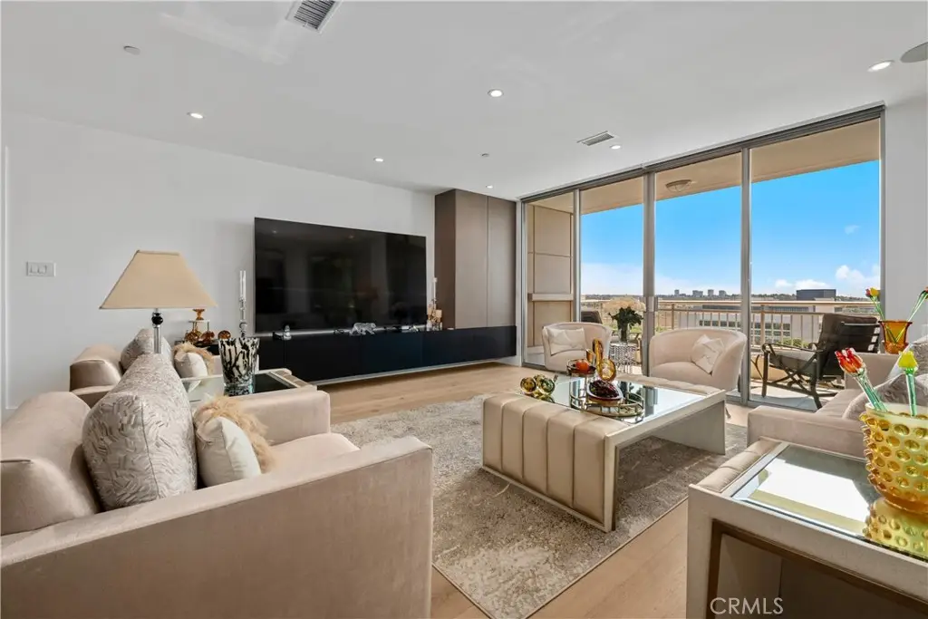Welcome to Single-Level Luxury Living on the 14th Floor of the Prestigious 8000 Building at The Plaza in Irvine - Just Below the Penthouse. Experience elevated elegance in this stunning, premium residence boasting breathtaking sunset and city light views from every room. Perched high on the 14th floor, this sophisticated home has been meticulously upgraded with high-end finishes and a contemporary design palette that complements any decor with rich, modern flair. Bathed in natural light, the open concept living area seamlessly blends style and comfort. The gourmet kitchen is a chef's dream, featuring sleek Quartz countertops, built-in appliances, and custom cabinetry--ideal for both entertaining and daily living. Additional luxury upgrades include beautiful hardwood flooring and motorized window shades for added convenience. Step onto your private balcony and take in panoramic views of the Irvine skyline and beyond. Residents of The Plaza enjoy exclusive access to world-class, resort-style amenities including 24-hour concierge service, two sparkling pools with cabanas, a state-of-the-art fitness center with steam rooms, club and billiard rooms, a business center, and more. HOA dues cover gas, water, and trash. Whether you're looking for a refined primary residence or a fully furnished luxury rental, this home delivers the ultimate in convenience, style, and sophistication--right in the heart of one of Orange County's most prestigious communities. Truly a must-see to appreciate.