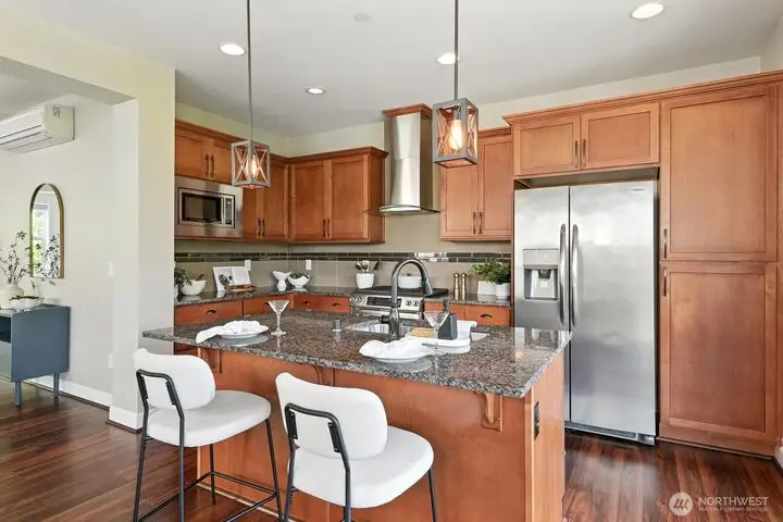 ***HUGE PRICE REDUCTION** Similar unit sold for 100k+ more in the spring. Stylish 5-bed, 3.5-bath, east-facing, end-unit in desirable Brownstone @ Issaquah Highlands! Featuring brick exterior, soaring ceilings & abundant natural light. Offers perfect blend of comfort & style in prime location! 1-2 block to groceries, restaurants, parks, theater, top schools & more! Enjoy open kitchen & living room w/ large dining area, covered deck & gas fireplace. Upstairs has 3 bedrooms on same level, incl primary w/ ensuite & laundry for convenience. Lower level has additional bedroom, 2nd walk-in closet & 3/4 bath. Top floor has versatile bedroom/bonus room w/ mountain views. Attached 2 car garage w/ parking in front. Won't last long!