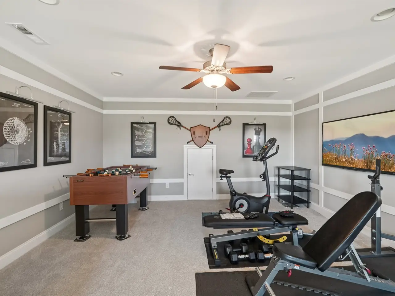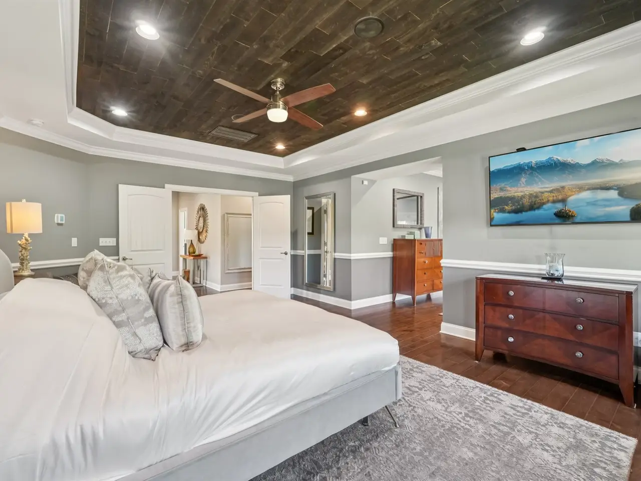 Welcome your Weddington estate home that defines luxury living. This former model home offers an unparalleled combination of elegance, comfort, and state-of-the-art features. Stunning curb appeal, complete with a welcoming front porch and an oversized 3-car side-load garage, set against the backdrop of a wooded and expansive private backyard. Grand foyer with soaring 10-foot ceilings, exquisite millwork, and hardwood floors. Formal dining room and living room. Family room with gas fireplace and coffered ceilings leads to the heart of the home; a gourmet kitchen, a chef's dream featuring a massive island, tons of countertop space and extensive cabinet storage, stainless steel appliances, a farmhouse sink, walk-in pantry, drop zone with cubbies and a private office nook. Direct access to the covered patio and firepit - relaxing outdoor living! Guest br and full ba on main. Second floor features a luxurious primary suite; a true sanctuary, offering a spa-like en-suite bath, dual closets and direct access to laundry room. Plus+ a sitting area and balcony for your own private escape! All bedrooms are spacious and have their own bath. The massive bonus room, with its designer shiplap and surround sound, is perfect for a media room, recreation area, or workspace. Third floor recreation area is that perfect flex space- one more area that perfectly completes the ease and flow of this home. Garage with finished floor and tons of storage opportunity, full yard irrigation. As a former model home, this property is filled with high-end upgrades and thoughtful details that set it apart. From designer lighting to custom built-ins, every aspect of this home has been meticulously curated to offer the pinnacle of modern luxury. Enjoy the perfect balance of serene, private living while being just minutes from highly rated public schools, vibrant shopping and dining of Waverly, Rea Farms, and Blakeney. This is more than a home; it's a lifestyle.