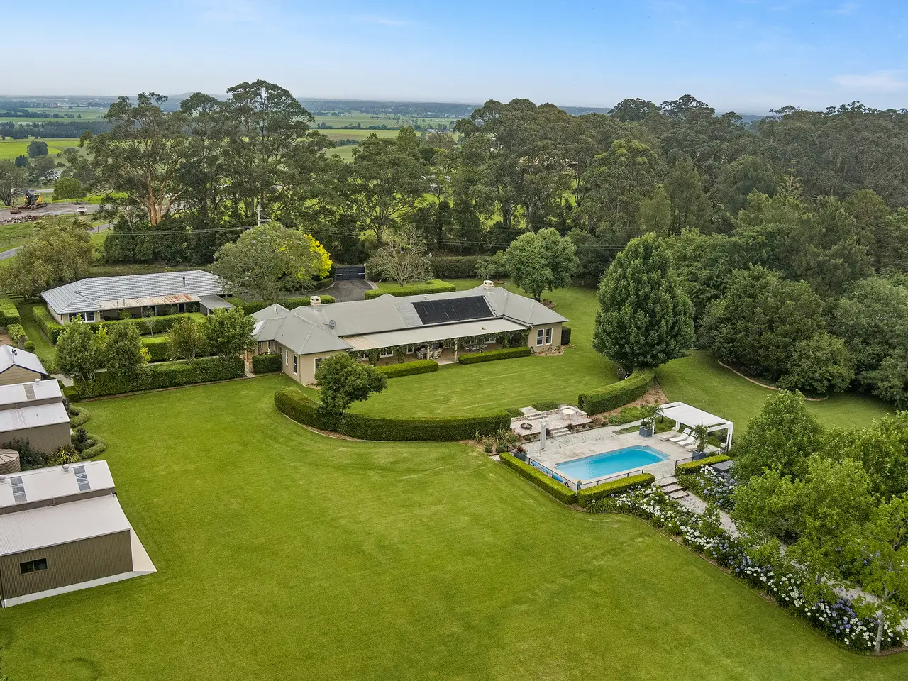 Sun-drenched lawns stretch towards the horizon, framed by the towering escarpment of Drawing Room Rocks, where shifting light paints an ever-changing masterpiece. At the heart of this five-acre estate, a grand country manor stands in perfect harmony with its surroundings-an architectural tribute to Parramatta's Elizabeth Farm homestead, reimagined by heritage architect Richard Rowe and built to exacting standards. Designed with grandeur and symmetry, the main residence unfolds across two stately wings, each embracing an atrium of light where French doors draw in natural sunshine from both north and south aspects. Soaring ceilings, fireplaces, and refined finishes elevate the interiors, while four privately zoned bedrooms and three bathrooms ensure space and serenity. At the heart of the home, an elegant kitchen flows out to a vine-wrapped patio, where regal columns frame the view across sculpted hedges and tiered lawns, leading to the terraced pool oasis primed for iconic South Coast summer days. A self-contained three-bedroom residence offers flexibility for multi-generational living, dual occupancy, or an income-generating retreat, while two brand-new barn-style Colorbond sheds cater to hobbies, rural recreation, or agricultural pursuits. In a region celebrated for its prestigious rural estates, this is a home where history, craftsmanship, and natural beauty converge. • Five-acre estate with versatile RU1 land zoning • Main residence with four bedrooms and three bathrooms • Open-plan living with fireplaces and ducted AC throughout • North- and south-facing patios for natural light and alfresco living • Self-contained three-bedroom secondary residence • Double lock-up garage with additional parking • Two barn-style Colorbond sheds for storage or agricultural use • Town water supply plus a 12kL water tank • Ornate gardens with sculpted hedges and established trees • Terraced pool area with views of Drawing Room Rocks escarpment Contact us today to arrange an inspection.