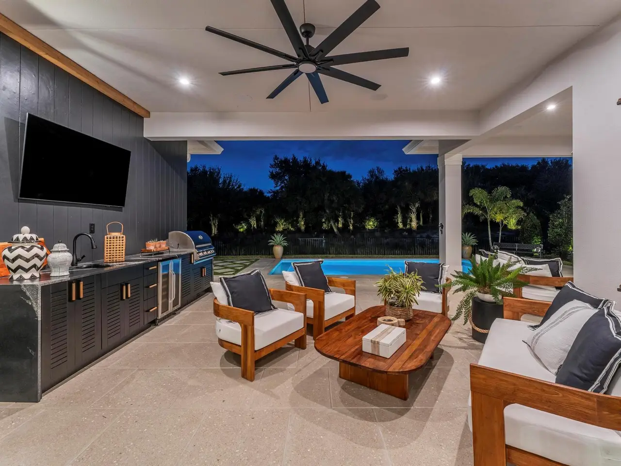 Exclusive Langford Landing Enclave! 40-FOOT BOAT SLIP! Perfectly oriented with preserve vista, impossibly private in feel. Soaring 2-story foyer entry. Open concept, with distinct spaces, including living, dining, and dedicated office. Designer custom kitchen, with large island, and butler pantry. Downstairs Main Suite with custom His/Her closets, pass-thru shower, & spa tub. Upstairs, 4 guest beds with en suite baths, living area, and wide balcony. Full impact glass, Sonos system, integrated security, up/down laundry, 24kw generator/500 gal tank. 2024 new saltwater pool, outdoor living room with gas fireplace, modern outdoor kitchen. True three-car garage for enthusiasts, with custom cabinetry and rod storage. Residence has private 40-FOOT boat slip & 24k lift at on-property marina.