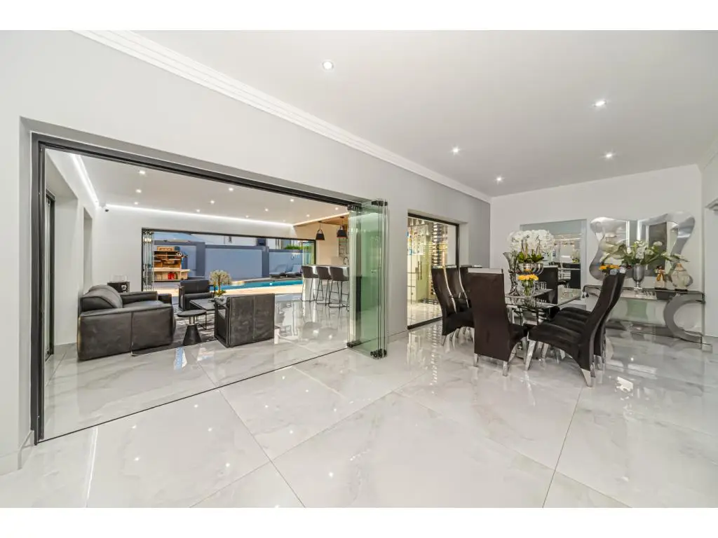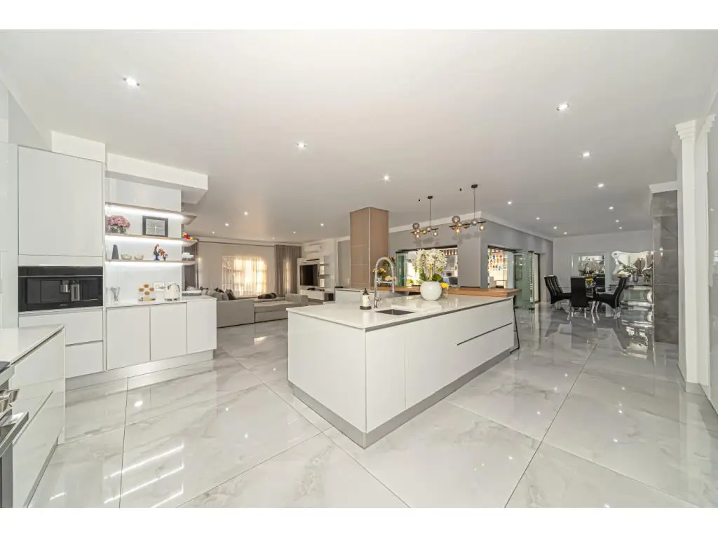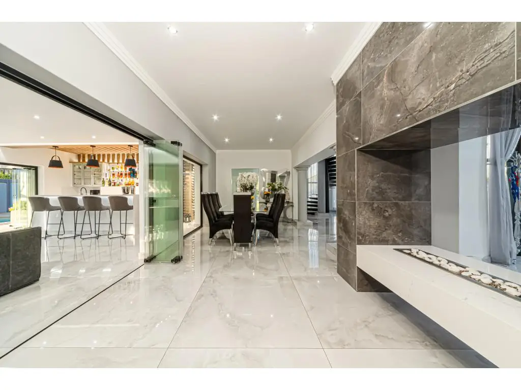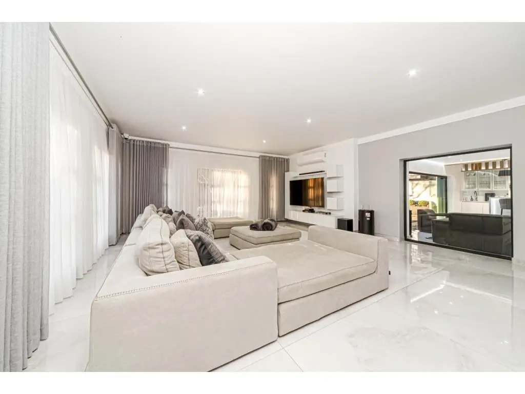 The epitome of luxurious Aspen living! Experience the height of luxurious living in this impeccably designed residence, occupying an expansive 810sqm of internal space on a dream stand of 1297sqm. Displaying state-of-the-art finishes and stunning architectural detailing, the home has been meticulously crafted for effortless indoor/outdoor living and resort style entertaining. This property enjoys a wonderful sense of seclusion in a tightly-held blue ribbon address. Boasting 4 spacious bedrooms, 2.5 ultra modern bathrooms. The special feature is the Main bedroom which is simply breathtaking with its shear size, with two balconies, dream walk in closet and private lounge! Beyond, spectacular open plan contemporary areas such as your lounge, formal lounge and dining room served by a large commercial grade all white kitchen with SMEG Range, handcrafted timber island and fully appointed butlers pantry and scullery with separate laundry room. An inspired entertainment room featuring a full ultra stylish bar and wine cellar which pour out onto a rare well established back garden with a sparkling swimming pool, boma area and kids jungle gym- your kids will always be busy! Plus a full gym room, triple garages, staff accommodation, full solar system, borehole with jojo tanks and impressive water features which makes this magnificent stand out from the rest. Once in a lifetime does a residential offering of this distinction, built on a site of such prestige, present itself as your ideal home. Your time is now!