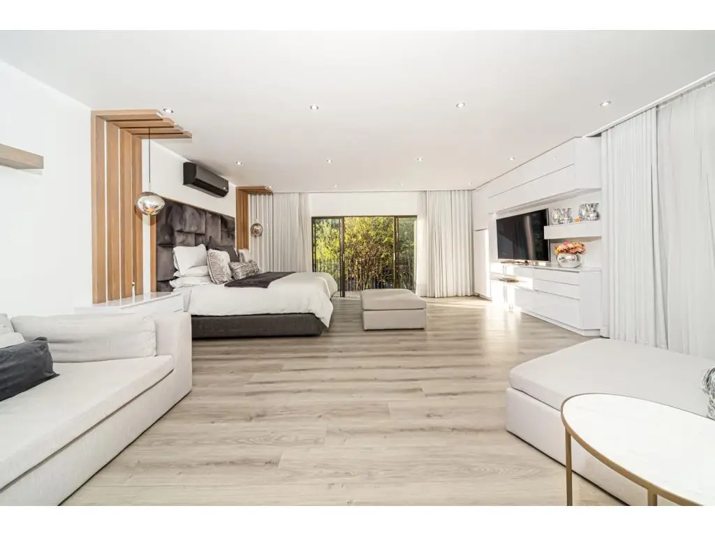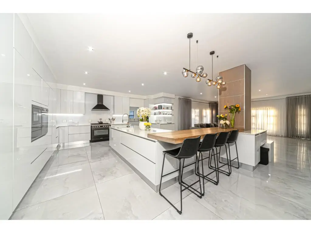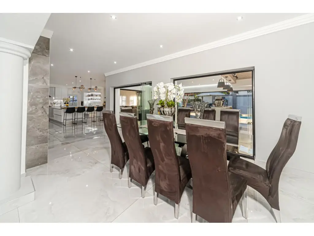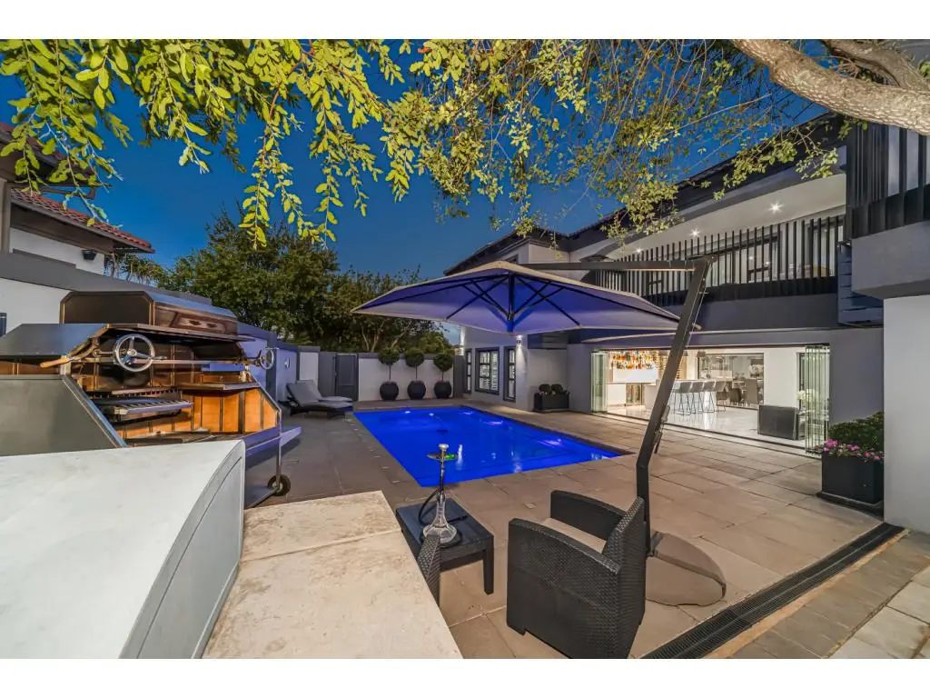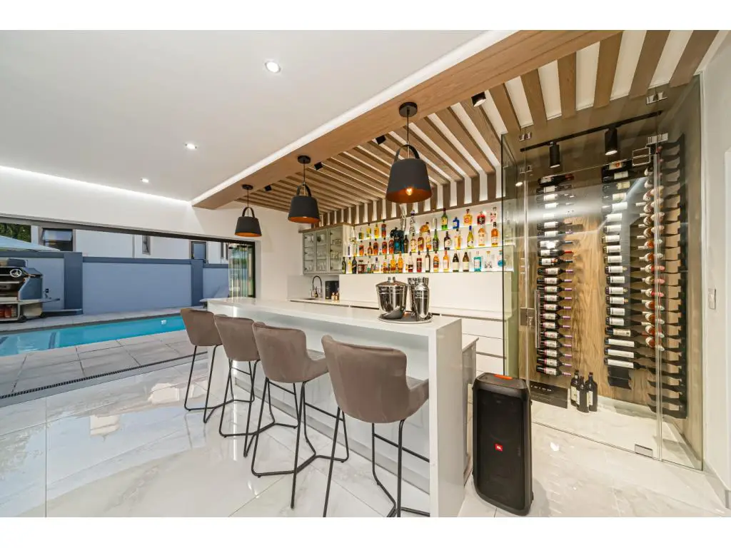The epitome of luxurious Aspen living! Experience the height of luxurious living in this impeccably designed residence, occupying an expansive 810sqm of internal space on a dream stand of 1297sqm. Displaying state-of-the-art finishes and stunning architectural detailing, the home has been meticulously crafted for effortless indoor/outdoor living and resort style entertaining. This property enjoys a wonderful sense of seclusion in a tightly-held blue ribbon address. Boasting 4 spacious bedrooms, 2.5 ultra modern bathrooms. The special feature is the Main bedroom which is simply breathtaking with its shear size, with two balconies, dream walk in closet and private lounge! Beyond, spectacular open plan contemporary areas such as your lounge, formal lounge and dining room served by a large commercial grade all white kitchen with SMEG Range, handcrafted timber island and fully appointed butlers pantry and scullery with separate laundry room. An inspired entertainment room featuring a full ultra stylish bar and wine cellar which pour out onto a rare well established back garden with a sparkling swimming pool, boma area and kids jungle gym- your kids will always be busy! Plus a full gym room, triple garages, staff accommodation, full solar system, borehole with jojo tanks and impressive water features which makes this magnificent stand out from the rest. Once in a lifetime does a residential offering of this distinction, built on a site of such prestige, present itself as your ideal home. Your time is now!