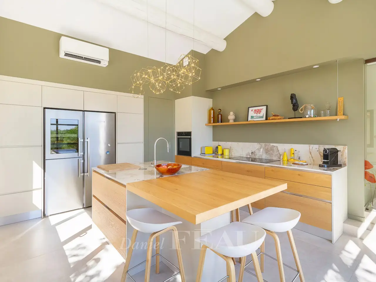 This relatively recent 140 sqm single-storey property commanding a superb view of the surrounding villages and the countryside is located in peaceful Joucas village just a few minutes from Gordes. Renovated throughout and extended in 2022, it includes a spacious living/reception room bathed in sunshine and opening onto two terraces, a contemporary kitchen with an adjacent utility room, a study, and three bedrooms including a master suite with a shower room and a dressing room. The over one-hectare of grounds is planted with an olive grove and fruit trees, and features a lap pool and a little belvedere commanding a breathtaking view. With a 40 sqm garage.