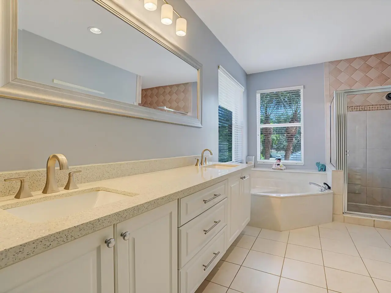 BEST VALUE IN ALL OF JUPITER! Situated on a cul-de-sac on a .29 acre lot, is a beautifully maintained 6 bedroom, 4 bath home with 3 car garage. Gorgeous marble flooring flows throughout the first story. A large, 1st floor office/guest room with ensuite full bath is ideal for remote work and guests alike. Upstairs, you will find an additional 5 bedrooms, two spacious bedrooms share an accommodating full bath in addition to 2 other large bedrooms with a jack and jill. French doors open into your spacious owner's suite with ample closet space. Outside, enjoy the newly constructed heated, saltwater pool with 1400 sq ft of travertine patio, surrounded for privacy and serene outdoor living, by mature landscaping. New HVAC - Fresh exterior paint, April 2025. Stunning and priced to sell!
