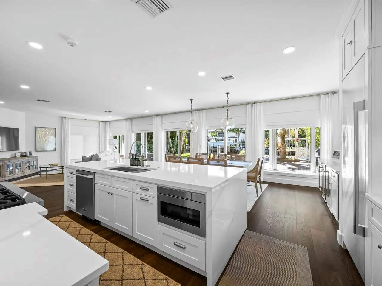 Stunning Key West-style waterfront home in Jupiter, Florida - A Boater's Dream! This beautifully remodeled five bedroom, 3.5 bath waterfront home, located in the heart of Jupiter, Florida, offers the ultimate in coastal living. Set on 78 feet of prime waterfront property on, a deep water canal the home features a dock with electric and water, plus a 13,500-pound boat lift - perfect for boating enthusiasts. With no fixed bridges, you'll have quick and easy access to the Intracoastal Waterway and just minutes from the Jupiter Inlet to the Atlantic Ocean. Original house was gutted to exterior walls and rebuilt with a second story in 1995 under Dade County Codes, then completely remodeled/updated in 2022 inside. The home blends modern luxury with classic Key West charm. Inside, you'll find wide-plank wood flooring adding a warm and inviting feel to every room. The heart of the home is its stunning gourmet kitchen which boasts Signature Kitchen Suite appliances, including refrigerator and freezer columns, dual-fuel pro gas range with griddle, along with custom cabinetry and quartz waterfall countertops that make a bold statement. A bar prep sink adds convenience, making the space perfect for both everyday living and entertaining. In addition to the chef's kitchen, there's a separate bar area featuring a beverage refrigerator and wine cooler, offering the perfect spot for mixing cocktails or storing your favorite wines. The home is equipped with impact glass and a metal roof. Other upgrades include two new A/C units (one installed in 2022, the other in 2023), a tankless on demand gas hot water heater (installed in 2023), and a 250-gallon propane tank for added efficiency. For added comfort and convenience, the home also features motorized window blinds, which allow for effortless control of light and privacy at the touch of a button. With five spacious bedrooms, 3.5 baths, and a layout designed for easy flow between indoor and outdoor spaces, this home is perfect for both relaxing and entertaining. The dock, which stretches along almost the entirety of the back of the property, offers ample space for docking or simply enjoying the waterfront. The home also features a home security system for added safety. Furniture is negotiable. This exceptional waterfront property is located in one of Florida's most desirable communities.