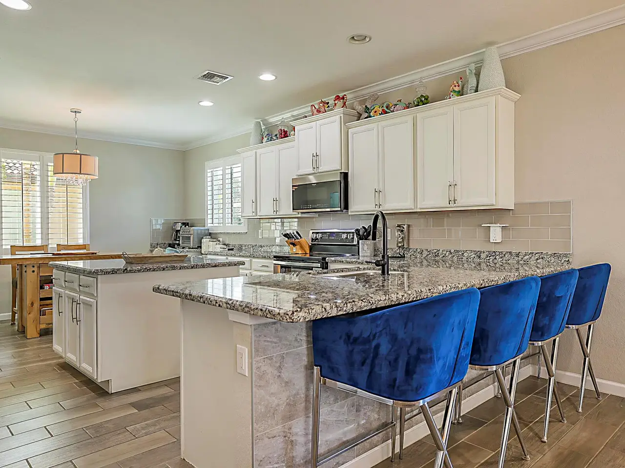 Incredible 5 bedroom, upgraded pool home in the highly sought after community of Stonewood Reserve. Spacious layout w/ updated lighting throughout including a stunning chandelier in the dining room. Open concept both upstairs & down, airy & bright. This home has been meticulously cared for by original owner and is ready for its new family. Offering 3,700 sq ft of living space across two levels, w/ a huge master suite upstairs. Completely updated w/ state of the art fixtures, Italian chandeliers and plantation shutters, California closets, huge loft/family room, finished laundry room w/ custom backsplash, finished garage floors, oversized driveway, 2 pantry kitchen, expanded screened lanai, & crown molding, Close to shops, restaurants, 1-95 & the beach. A rated Schools