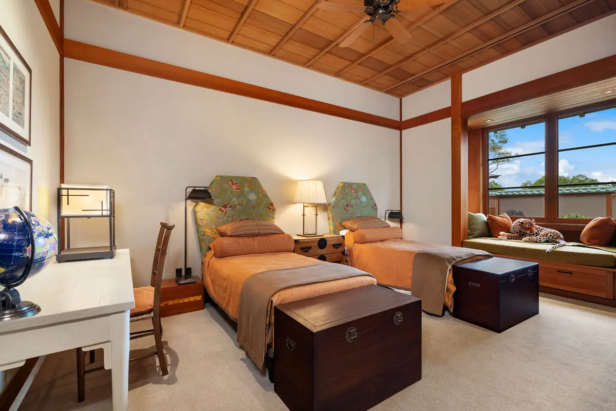 On the north side of this intriguing estate, accessed by a hallway adorned with a 50m year old fossil wall, you'll find four generously sized bedroom suites, a large media room, and their own pantry and laundry area. Two of these suites offer private lanai and sumptuous ocean, coastline and Mauna Kea views!