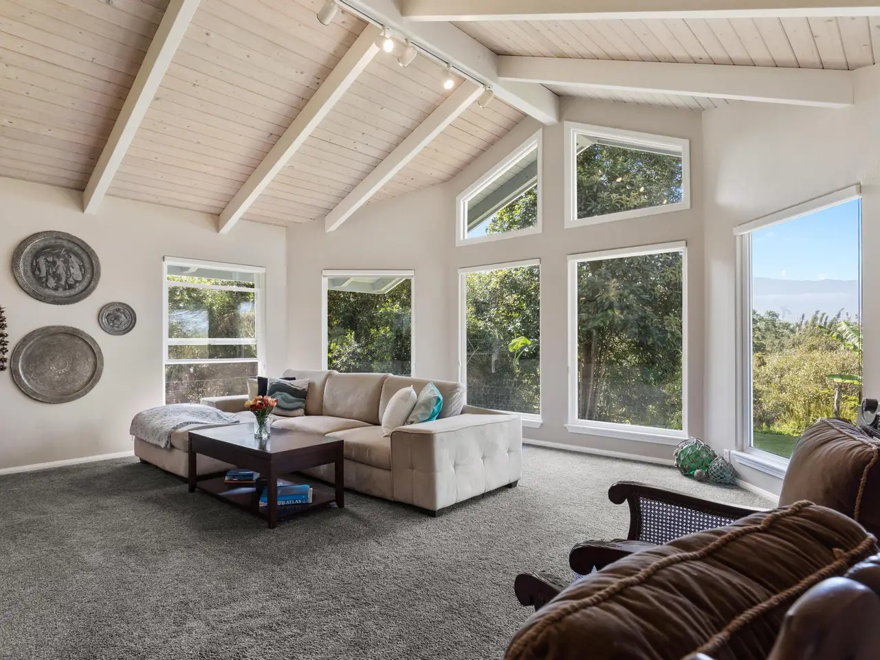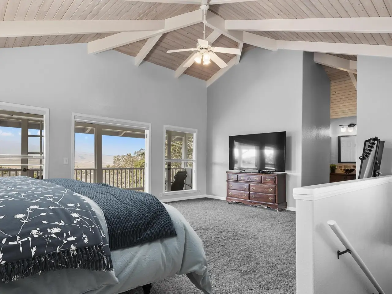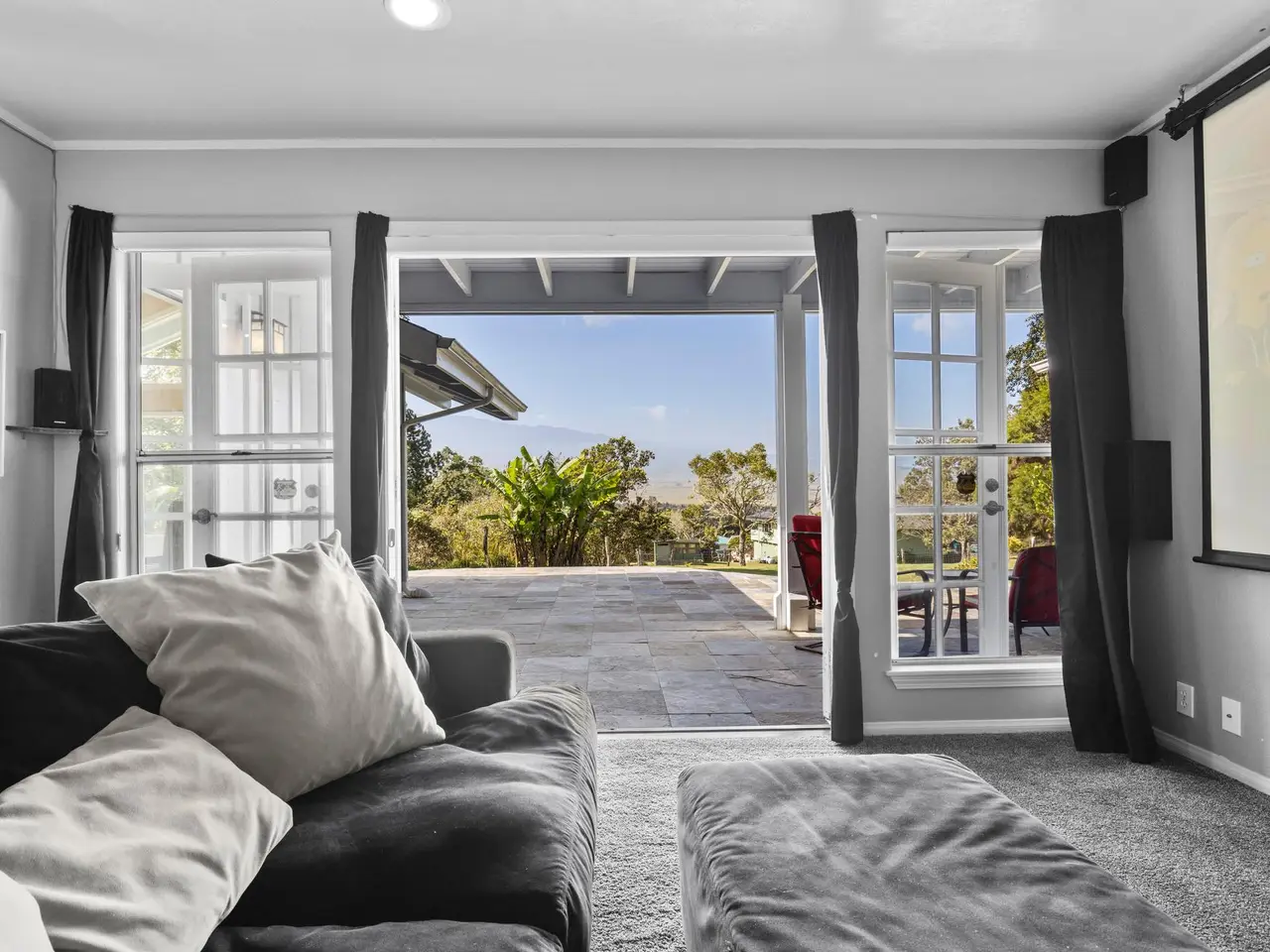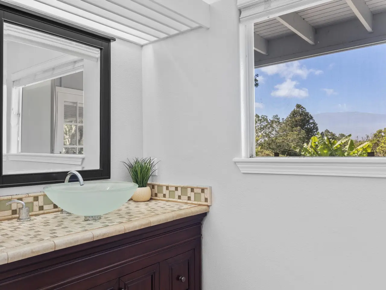 Welcome home to this meticulously maintained and thoughtfully upgraded country estate in Waimea, where cool air and sweeping views of Mauna Kea provide the perfect backdrop for everyday living. Nestled on a peaceful hillside, this spacious home blends luxury, comfort, and natural beauty into one incredible package. Awaken your inner cooking connoisseur with this spectacular kitchen. Complete with an oversized island, a new touchscreen refrigerator, and generous cabinet space. A pass-through to the formal dining room makes for a seamless hosting experience. Enjoy cozy evenings by the wood-burning fireplace, perfectly placed between the dining and living rooms. Soaring windows in the great room flood the home with natural light and offer exceptional views of the landscape. Movie lovers will be wowed by the dedicated home theater room, featuring a 4K projector and 120” screen for the ultimate cinematic experience. Upstairs you’ll find a 640 sf private suite featuring vaulted ceilings, walk-in closet, and a spacious balcony facing Mauna Kea. The ensuite bathroom encompasses glass koi-fish sinks, a walk-in shower, and a tranquil Japanese ofuro soaking tub. The 3 downstairs bedrooms are each unique. One with a private entrance and mountain views, another with his and her closets, and the other with its own ensuite bathroom. Step outside to the covered patio to immerse yourself in a botanical paradise. The property bursts with vibrant foliage and fruit-bearing trees, including citrus, apple-bananas, grapefruit, guava, avocado, dragon fruit, and more. Endless pineapple plants line the home’s perimeter, and blooming favorites like cherry blossoms, roses, gardenias, and anthuriums add intoxicating beauty and fragrance to this one-of-a-kind garden. Whether you're drawn to the tranquility of nature or the charm of country living, this exceptional home offers a rare opportunity to have it all.