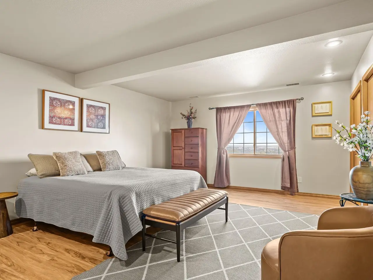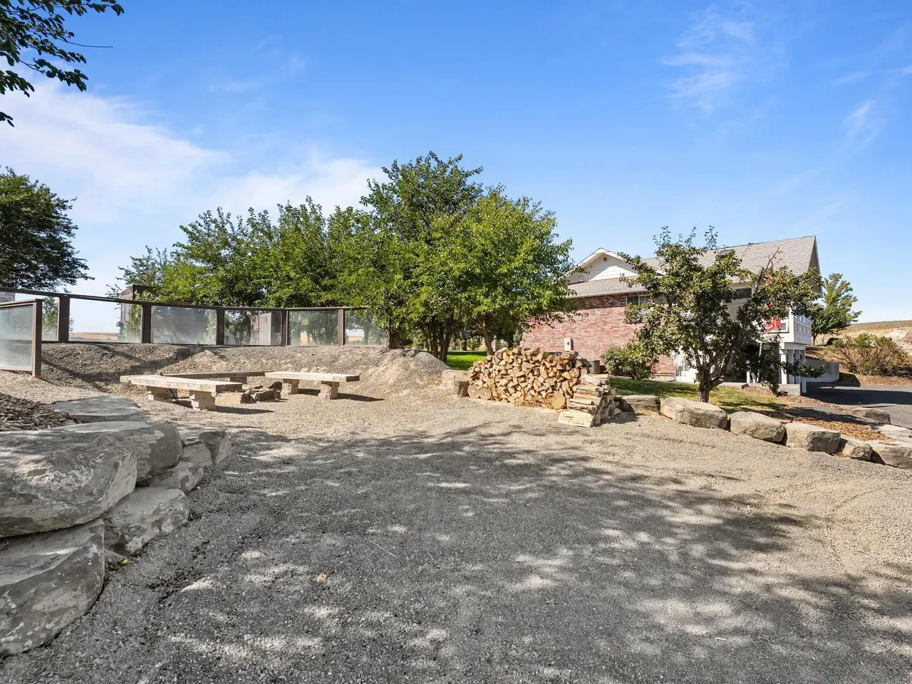 Experience the freedom of nearly 20 acres and some of the most breathtaking views in town. This private retreat blends wide-open spaces with a comfortable 4-bedroom home designed to capture the surrounding beauty. The main level features an open living and dining area with a cozy wood-burning fireplace, where windows frame the rolling landscape. A vaulted sunroom with gas fireplace provides a year-round sanctuary to enjoy the sunrise, sunsets, and changing seasons. The home includes one main-floor bedroom (currently an office) and a daylight basement with four additional bedrooms downstairs that include the primary suite. Outdoors, you'll find room for animals, gardening, and hobbies. A large shop with two full bays, an air compressor, a pellet stove for heating during cold months, and generous storage is perfect for projects and toys. Attached is a fully finished 2-bedroom, 2-bath apartment with laundry - ideal for guests, multi-generational living, or rental income. The property also features a chicken coop for fresh eggs, and a fire pit where family and friends can gather under the stars. Here you'll enjoy the best of both worlds: the tranquility of country acreage and the convenience of being just 10 minutes from shopping, schools, and everyday needs.