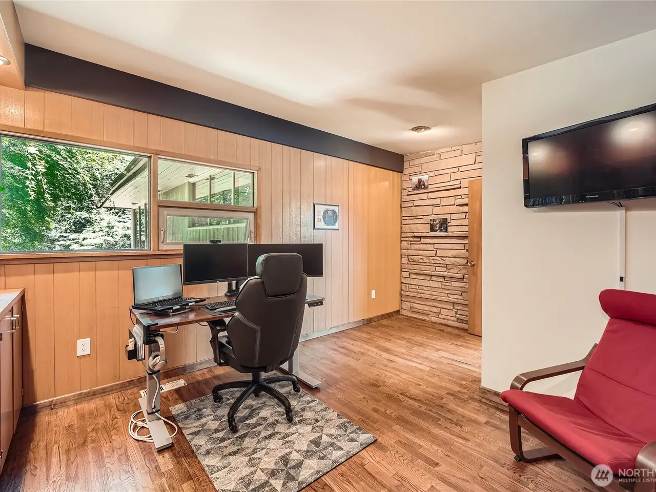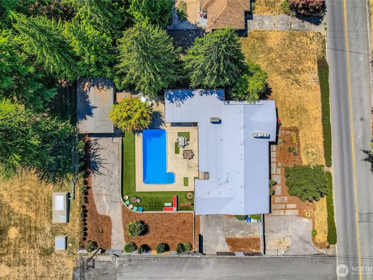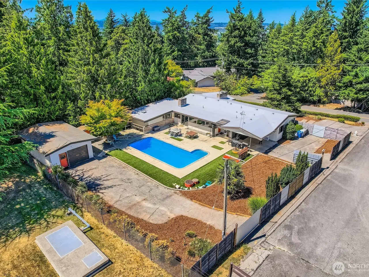 Stunning modern mid-century home with timeless style & a backyard oasis! This light-filled residence features clean lines, large windows, & warm wood tones throughout. Spacious main-level living areas flow effortlessly--perfect for entertaining or everyday life. The kitchen opens directly to the patio & pool area, creating seamless indoor-outdoor living. The daylight basement offers incredible flexibility with a bedroom, workout room, entertainment room, & 3/4 bath ideal for guests, hobbies, or multi-generational living w/separate entry. Enjoy your private retreat with an in-ground pool, expansive patio, & fully fenced yard. New furnace 2024. Located in a quiet, established Kent neighborhood near parks, shopping, schools, & 167. A rare find!