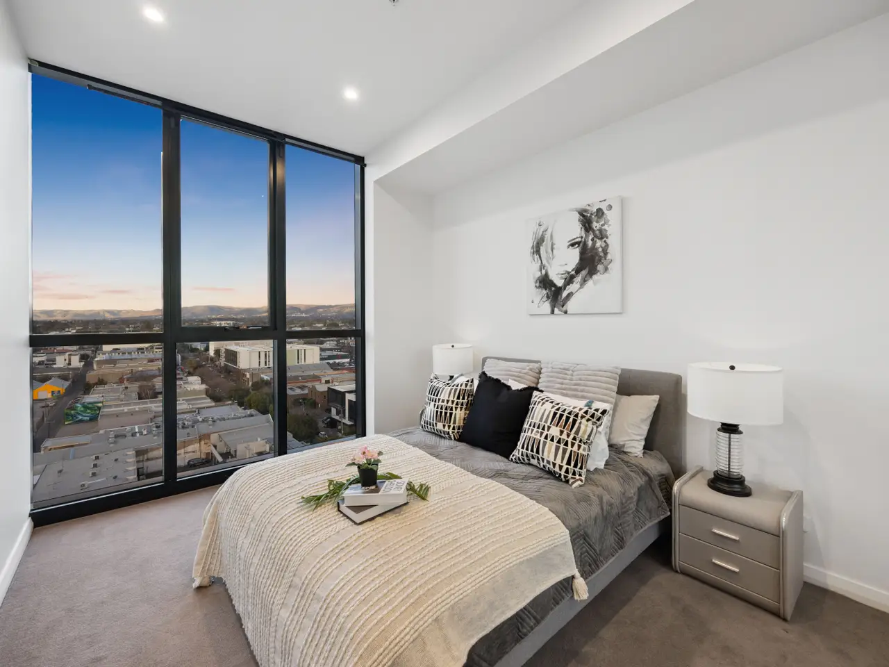 Uncompromising luxury and prestige combine to present a rarely found level of indulgent penthouse living on the leafy-east city fringe. Perched atop the esteemed 'East Park' apartment complex on the city's doorstep, sky bridge access to this three-bedroom penthouse reveals a sophisticated and spacious interior overlooking the CBD skyline and iconic neighbourhood establishments, including the National Wine Centre, Rundle Park and the Botanic Gardens. Maximising the spectacular outlook are three balconies along with wall-to-wall glass bathing the interior in golden sunrise hues… nature's finest art introducing the beauty that sets this penthouse apart from all others. Designed with three metre ceilings, sublime timber floors, a stone feature wall and an exceptional chef's kitchen, the vast open plan space with a full-width balcony is every home entertainer's dream. Also taking the experience to heavenly heights is the enchanting primary bedroom where the walk-in robe, couples' ensuite and private balcony are simply unrivalled. The exceptionally luxurious main and ensuite bathrooms are accompanied by a powder room and a well-designed laundry. And the perks of choosing this penthouse lifestyle extend to the inclusion of four carparks, along with the communal gym and shared BBQ facilities. - C.2017 apartment with four carparks and a storage cage - Executive home or premium investment - Full-width wall of interior storage cupboards - Exceptional master bedroom with a couple's luxe ensuite, plus-sized walk-in robe and private east-facing balcony - Queen size second and third bedrooms, east-facing with built-in robes - Vast open plan living: 3m ceilings, timber floorboards, stone feature wall with a built-in gas heater - Smeg kitchen appliances, integrated dishwasher, butler's pantry, stone benchtops - Two impressive bathrooms: full-height tiling, freestanding bathtubs, double walk-in showers, double wall-hung vanities - Separate powder room and laundry - Ducted reverse cycle air conditioning - LED downlights - Keyless entry, intercom system, CCTV - Located between St Peters Boys College and Prince Alfred College - Zoned Norwood Primary School and Marryatville High School - Nearby public transport - Walk to city entertainment and dining venues, universities, shopping precincts RLA 326078