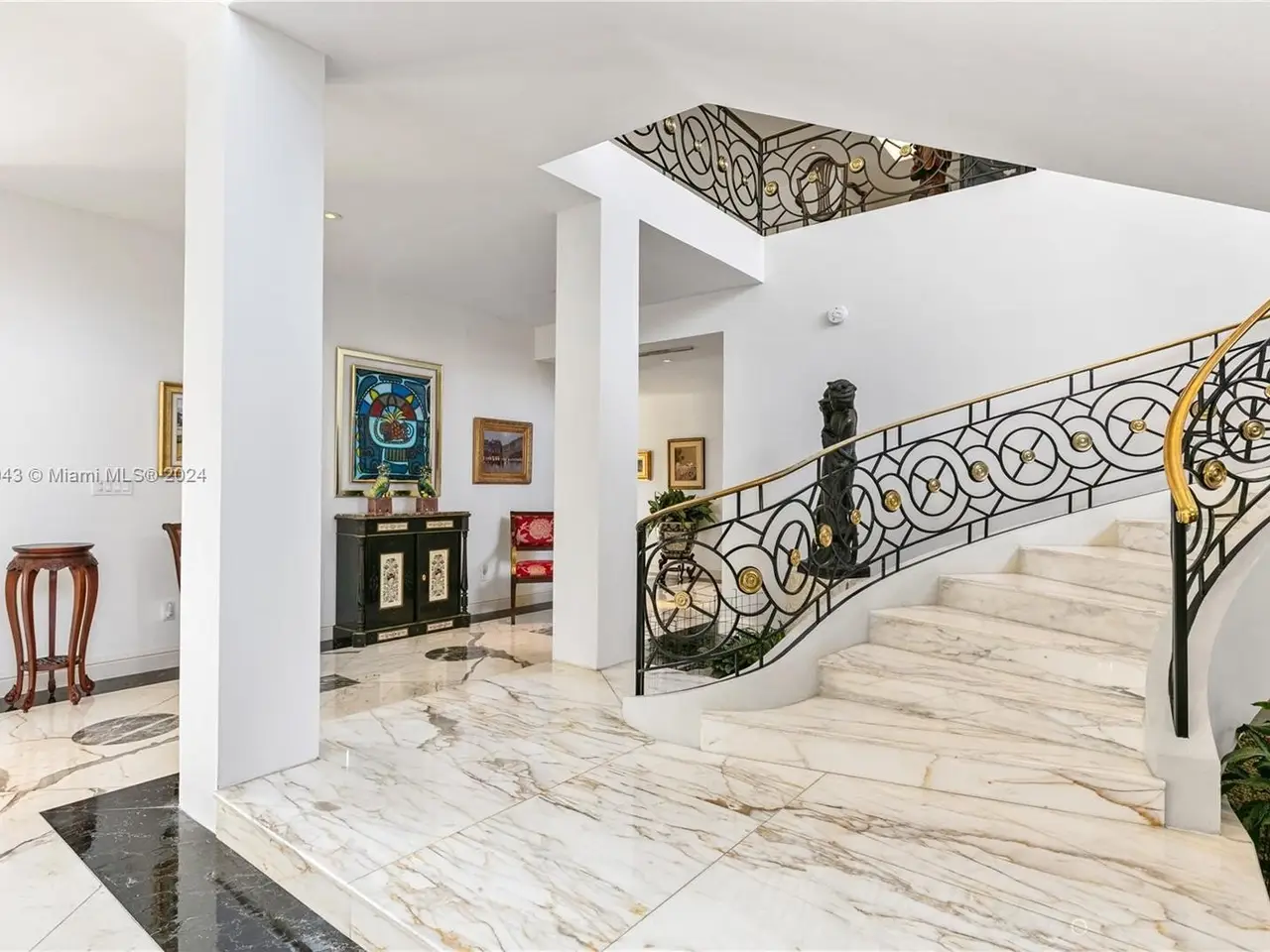 Spectacular Contemporary Home, located on Cape Florida Drive cul-de-sac, one of the highest land value in the island of Key Biscayne, over 1/2-acre lot, more than 250’ waterfront, private dock, boat lift, custom made pool, elevator, an elegant grand foyer entrance with an indoor botanical garden & electric sprinkler system, followed by a majestic unique custom design staircase by an iconic interior designer. This property of 8 Beds+8.5 baths is designed by a prestigious architect & built by Interscope features a solid foundation & Structure and a generator for the entire home. A unique design w/ guest suite, maids’ area, 5AC units, electric shutters on windows & doors, garage area has 2 covered+ 4 under a huge porte-cochere, +8 cars fit in paved driveway, 2 electric gates.