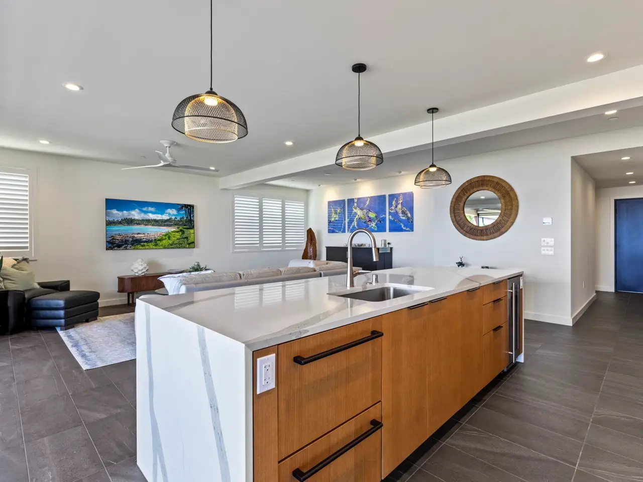 Luxury Living in Wailea’s Newest Development! Where Elegance Meets Island Living. Step into unparalleled luxury with Wailea’s world class beaches and amenities as your world. This is the exclusive 2 bedroom 2 bath residence you’ve been waiting for, offering breathtaking ocean and outer island views, sophisticated design with an open concept floor plan, and seamless indoor-outdoor living. The amazing gourmet kitchen features Bosch Benchmark appliances, Kohler fixtures, and then there are the wonderfully appointed, quality baths with Toto toilets throughout for refined comfort. Handsome designer tile flooring throughout stretches over the spacious quality of this inviting home, extending to your huge covered lanai, where you’ll find an outdoor prep area with built in Coyote gas grill plus exterior electric sunscreen. Once the gorgeous sliding glass doors disappear into the wall, you immediately notice how spacious the flow between your beautiful indoor living areas and the roomy lanai outside feels. The generous bedroom sizes ensure comfort and privacy, with plenty of storage within the home, plus an unbelievably huge extra storage downstairs for all of your lifestyle, recreation, and necessities to be tucked away, yet at your fingertips. Your reserved garage parking features electric car charging capabilities and this incredible home also has an additional reserved and assigned parking space on the ground level, with more spaces for guest parking. The resort style amenities of La’i Loa are sure to pamper, with a magnificent infinity edge pool and exceptionally large spa area, saunas, steam rooms, and ample lounge spaces with built in Coyote gas grills in the gathering areas, and the beauty of professional landscaping spotlighting the majesty of native Hawaiian vegetation. Walk to the resorts or The Shops at Wailea, enjoy the Wailea Beachwalk, and find out why people say there’s no better place to live than Wailea. Experience the essence of modern Hawaiian luxury. This is so much more than a home — it’s a lifestyle. Don’t hesitate. This is the Maui life you want!