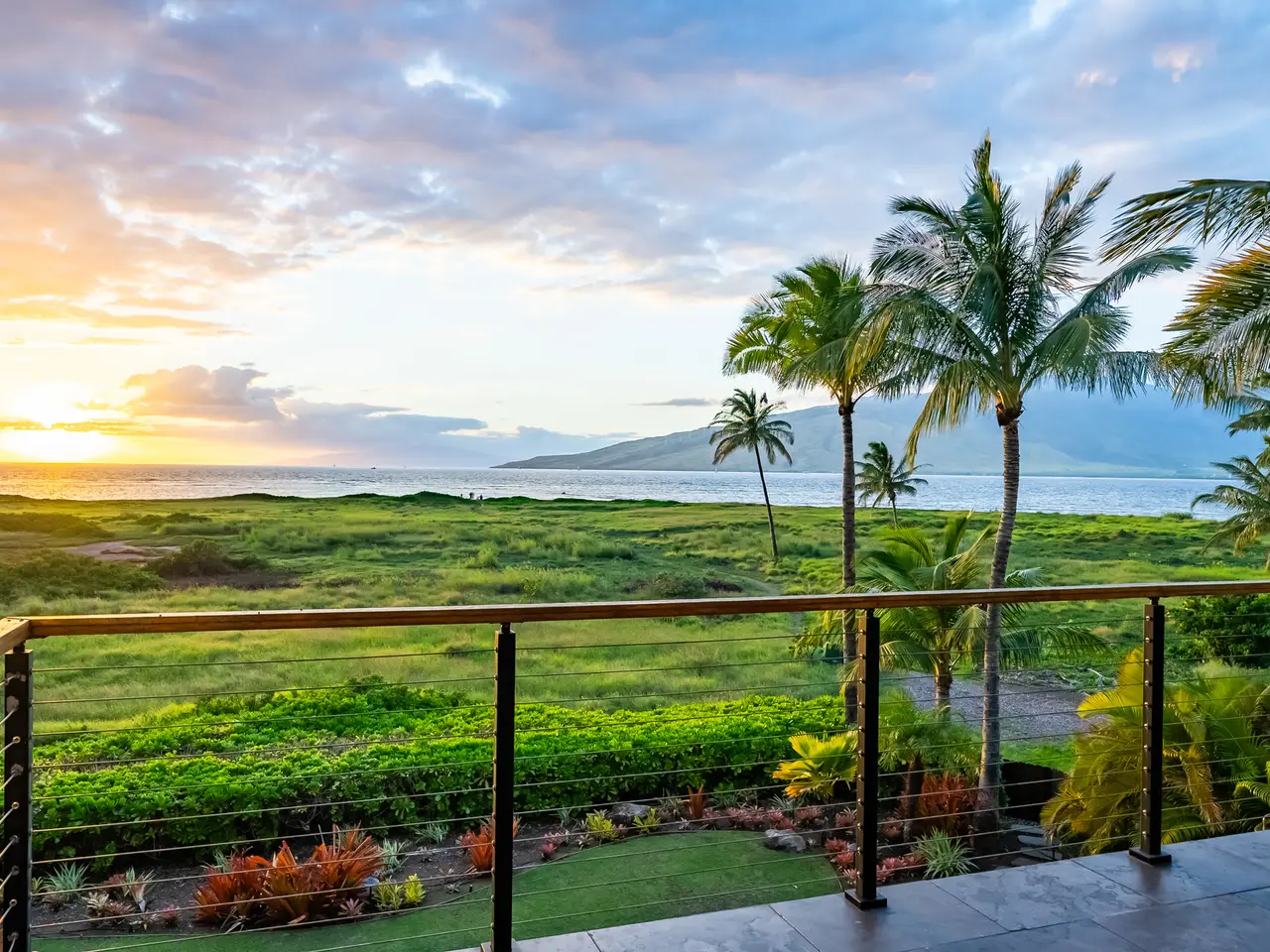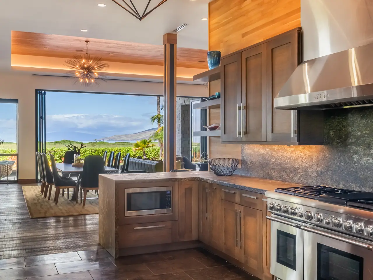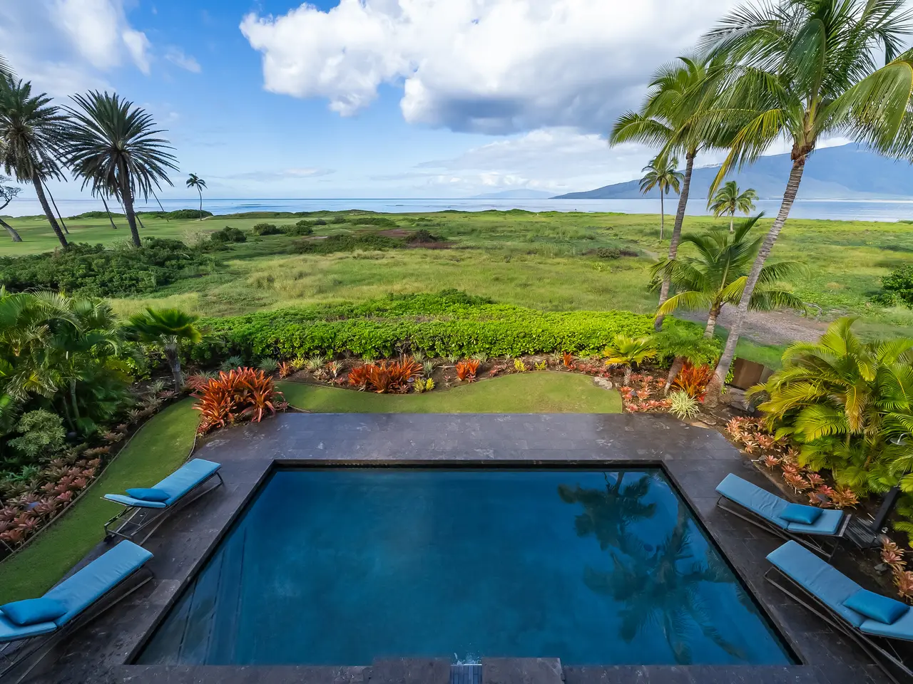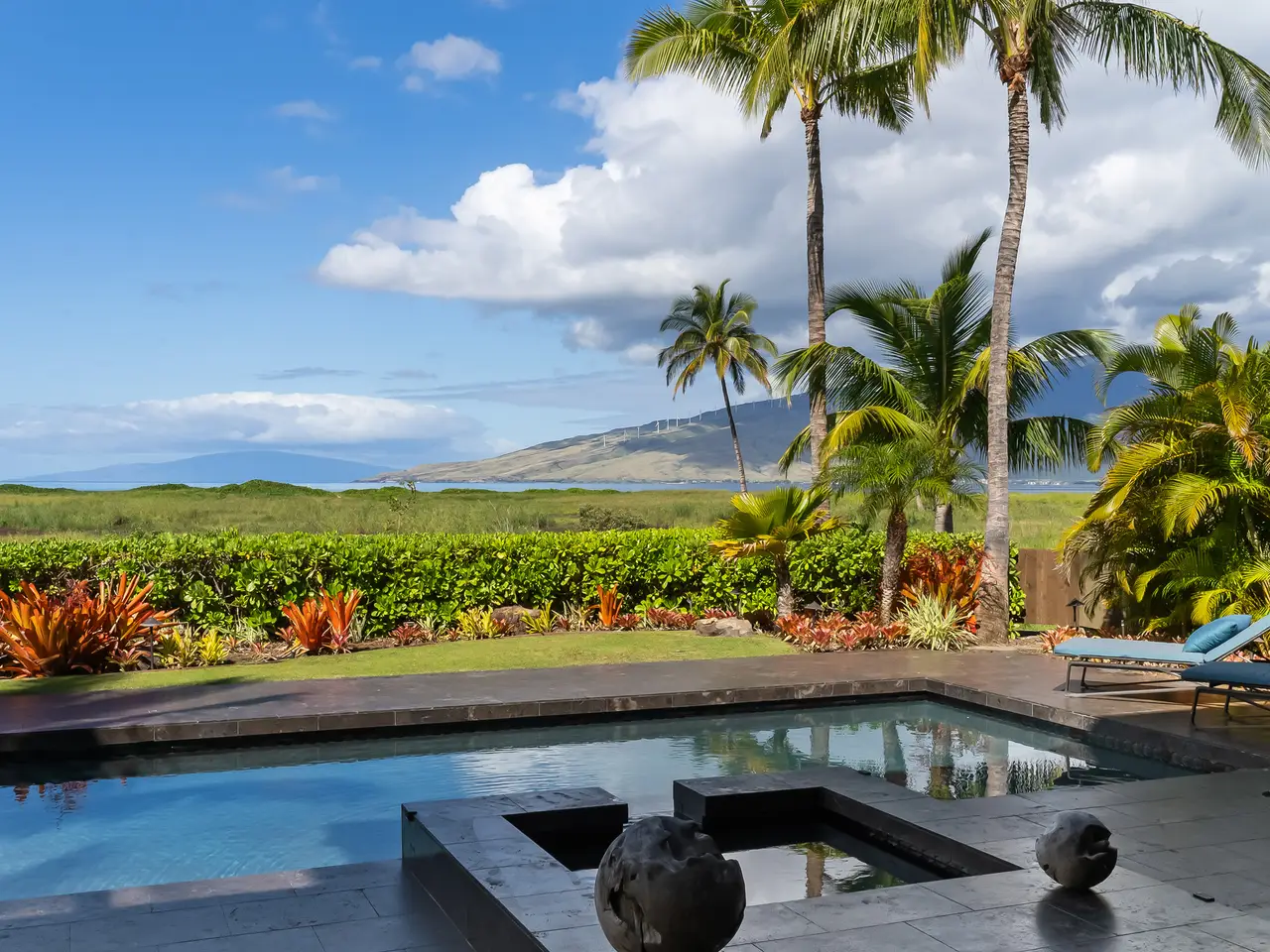 Sunlight and ocean breezes flow through 21 feet of bi-folding floor-to-ceiling glass doors, complemented by soaring 14-foot ceilings that blur the boundaries between home and horizon. Step into this South Maui beachfront estate, where elegant stone columns welcome you to a true masterpiece. The open-concept spaces unfold effortlessly, anchored by a chef's kitchen featuring custom white oak cabinetry with an interior finish that adds warmth and depth, quartzite countertops, tumbled Belgian limestone tile accents, hand-scraped French oak flooring, professional-grade appliances, and a generous breakfast bar— the perfect hub for shared meals, laughter, and connection. A floating staircase leads upstairs to the bedrooms, where the primary suite awaits as a serene sanctuary for the soul. It includes a spa-inspired soaking tub, dual vanities, a spacious walk-in closet, and a private ocean-view lanai ideal for morning reflections. Each additional guest suite has been thoughtfully designed to soothe the senses, with layouts and features that prioritize comfort, including ensuite bathrooms for ultimate privacy. Outside, your personal coastal retreat beckons. Lounge poolside in the saltwater pool, host gatherings under a canopy of stars, or savor a cocktail as the sky blazes with sunset hues. A detached guesthouse with a full bathroom and a two-car garage offer flexible additional space, while integrated smart home technology blends modern convenience into this tranquil, soul-nourishing haven. The adjacent lot is also for sale by the same seller. (MLS #407415, 892 S Kihei Rd) and can be purchased together.
