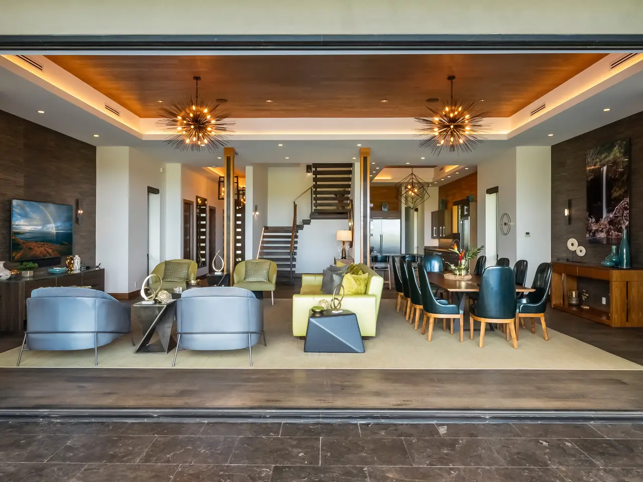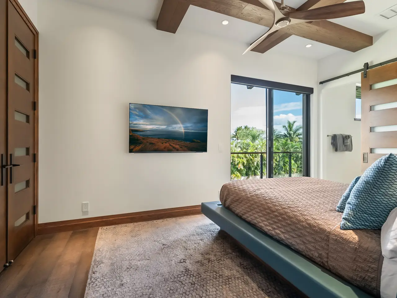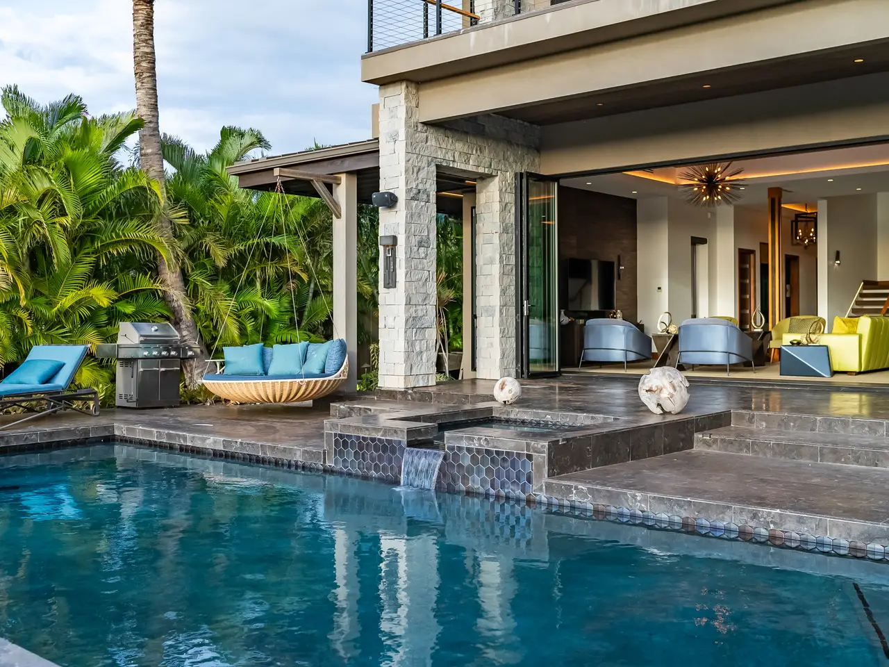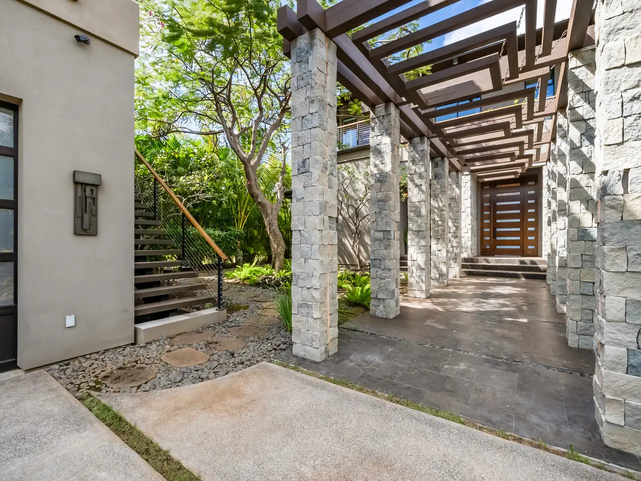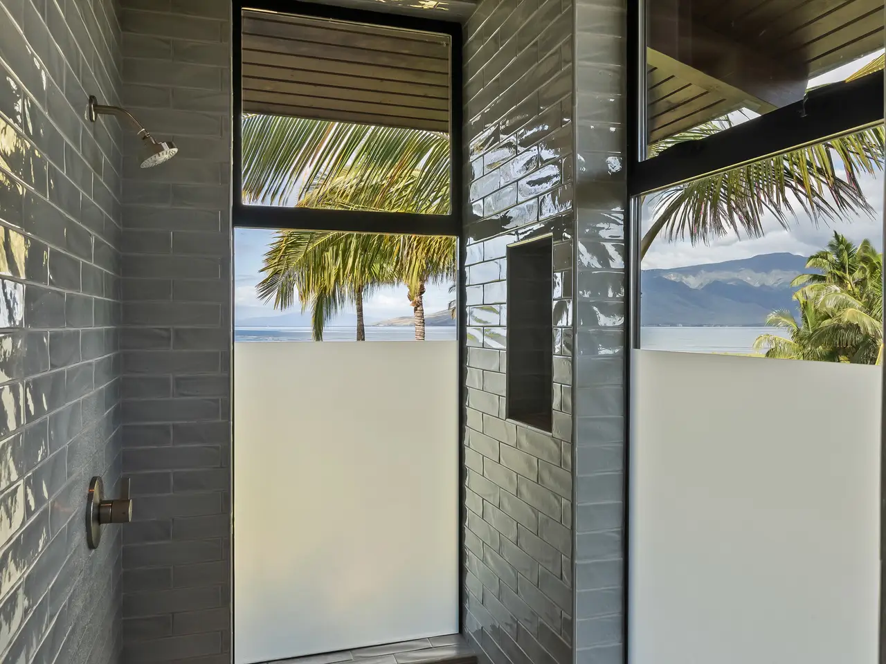 Sunlight and ocean breezes flow through 21 feet of bi-folding floor-to-ceiling glass doors, complemented by soaring 14-foot ceilings that blur the boundaries between home and horizon. Step into this South Maui beachfront estate, where elegant stone columns welcome you to a true masterpiece. The open-concept spaces unfold effortlessly, anchored by a chef's kitchen featuring custom white oak cabinetry with an interior finish that adds warmth and depth, quartzite countertops, tumbled Belgian limestone tile accents, hand-scraped French oak flooring, professional-grade appliances, and a generous breakfast bar— the perfect hub for shared meals, laughter, and connection. A floating staircase leads upstairs to the bedrooms, where the primary suite awaits as a serene sanctuary for the soul. It includes a spa-inspired soaking tub, dual vanities, a spacious walk-in closet, and a private ocean-view lanai ideal for morning reflections. Each additional guest suite has been thoughtfully designed to soothe the senses, with layouts and features that prioritize comfort, including ensuite bathrooms for ultimate privacy. Outside, your personal coastal retreat beckons. Lounge poolside in the saltwater pool, host gatherings under a canopy of stars, or savor a cocktail as the sky blazes with sunset hues. A detached guesthouse with a full bathroom and a two-car garage offer flexible additional space, while integrated smart home technology blends modern convenience into this tranquil, soul-nourishing haven. The adjacent lot is also for sale by the same seller. (MLS #407415, 892 S Kihei Rd) and can be purchased together.