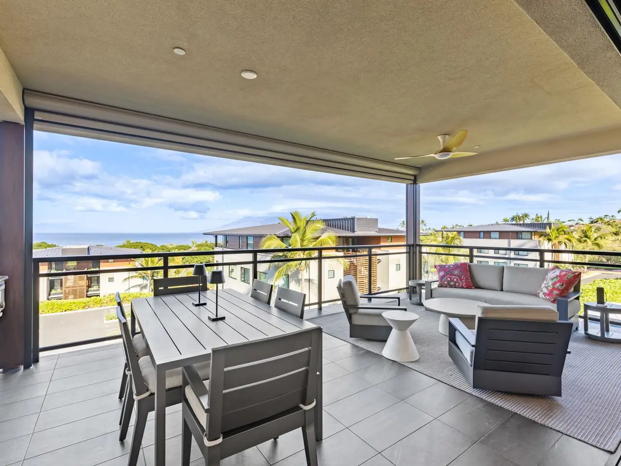 Live the Life You’ve Earned! Upon first entry, you will know you are home in Wailea’s Newest Development. Located in one of the most coveted locations within the La’i Loa community, this immaculate and luxurious second floor 2 bedroom 2 bath unit greets you with amazing Ocean and Outer Island views and offers fantastic sunsets and the wonder of great whale watching from your new home. This open floor plan sits wide to the view and once the beautiful sliding glass doors disappear into the walls, the living and outdoor areas blend seamlessly into the indoor outdoor lifestyle of your dreams. This home is beautifully appointed throughout and offered fully furnished with custom furnishings designed by Restoration Hardware. The handsome tile flooring upgrade extends to all areas and the world class chef’s kitchen with high end appliances including gas range from Bosch and Fisher Paykel double drawer dishwasher is wonderfully open for entertaining or your daily relaxation with loved ones. The expansive lanai features a Coyote gas grill with plenty of room for outdoor dining and an outdoor living area. You’ll notice the custom shutters and shades on all windows, plus the auto sunscreen on the oversized lanai, that gives you the flexible privacy and customizable mood setting for appreciating the beauty of each Maui day. The two baths are elegant in decor and function, offering the comfort and quality feel of resort type spa living. In addition to the community gates, each building has electronic access gates and garage, plus an elevator to all levels. Your private storage space in the garage area is huge and so convenient for extra storage, ready for any bikes, clubs, or other Maui accessories. The gated community has unbelievable amenities including an expansive infinity edge pool with dedicated lap end, giant hot tub, steam and sauna in the facilities, state of the art fitness center with free weights, two gathering areas, gas fired pit for sunset watching and more. This incredible unit is being sold turnkey - so just bring your clothes and get ready to live the good life in the one of a kind Wailea Resort, with all the world class beaches, shopping, restaurants, and amazing beauty of Maui to enjoy.