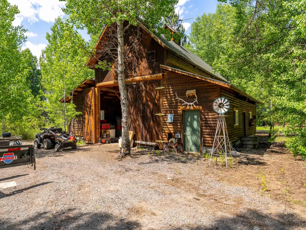 Mountain view ranch with cattle grazing in the summer and abundant wildlife year-round. This incredible 82.95-acre property features a 2,432 sq. ft. home with 3 bedrooms, 2 bathrooms, a 3-car garage, a large deck with covered porch, and stunning views of the ranch pasture and surrounding mountains. Forest service borders the property on three sides for added privacy and access to nature. Wildlife is everywhere--daily visits from 30-50 elk, Sandhill cranes in spring, summer, and fall, plus over 190 bird species recorded. Deer, coyotes, otters, wolves, weasels, mountain lions, bobcats, beavers, and bears all call this area home. Property highlights include a 24' x 30' log cabin hobby and craft room with spiral staircase to loft, a 40' x 48' barn, a seasonal pond, and a landscaped lawn with water feature and full sprinkler system powered by a 35 GPM well. A working ranch, wildlife retreat, or private mountain paradise--this property has it all!