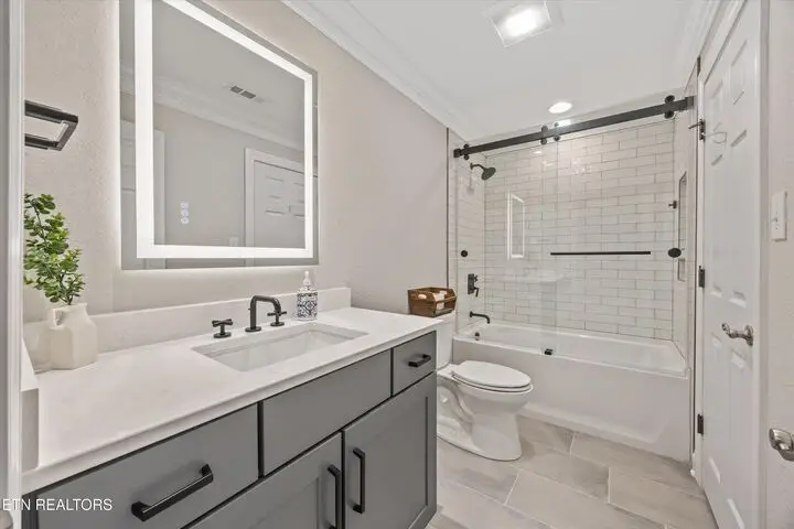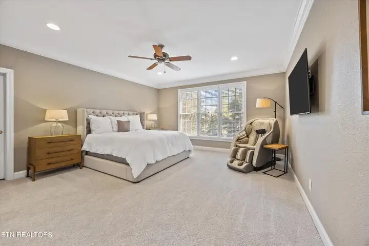 Experience refined living in this stunning 6-bedroom, 6-bath home offering over 8,300 sq ft of thoughtfully designed space in West Knoxville's Farragut area. The main level provides everyday convenience with an updated kitchen featuring modern finishes, a spacious primary suite, an additional bedroom and full bath, an office, laundry, and a 3-car garage. Upstairs, you'll find three bedrooms—each with its own bathroom—along with two versatile bonus rooms and a walk-up attic for additional storage or creative space. The finished basement expands your lifestyle options with a theater room, living area, an additional room ideal for a gym or guest suite, and a 4th garage bay, perfect for extended living or entertaining. Outdoor living is a highlight with a screened-in porch and open deck overlooking a backyard that combines a grassy area for play or gardening with a wooded backdrop for privacy and relaxation. Located in a welcoming community with a pool, clubhouse, tennis and pickleball courts, and a playground, this home offers both recreation and comfort. Zoned for highly ranked Farragut schools and conveniently close to parks, shopping, and dining, this property blends space, function, and style in one of West Knoxville's most desirable areas.