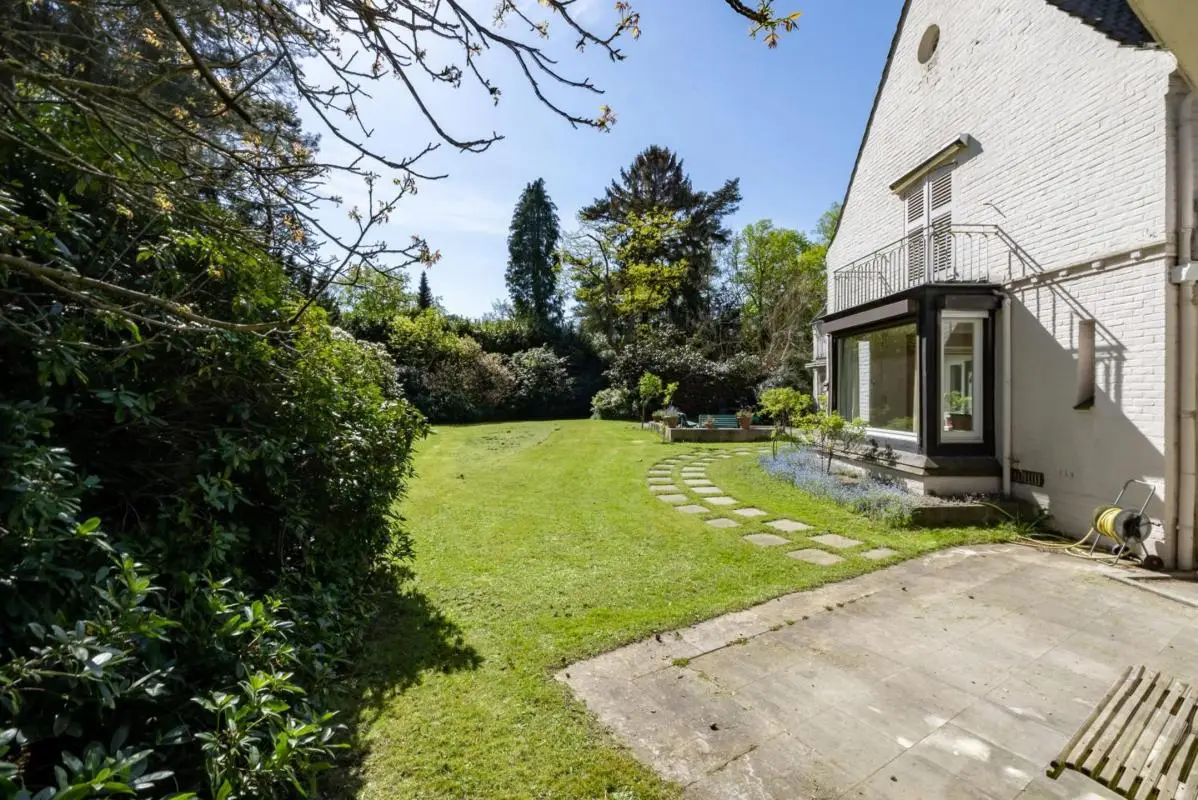 In the Bechet neighbourhood, close to the Forêt de Soignes, this superb classic property stands on a plot of approximately 35 ares, featuring a magnificent garden and a wide façade that enhances its appeal. The villa has a living area of approximately 650 m², comprising beautiful, bright reception rooms, a fitted kitchen, four bedrooms and three bathrooms. A separate service wing houses two additional bedrooms and a bathroom. The property is completed by a beautiful indoor swimming pool, a double garage, and is located in a quiet and green residential area. EPC: F (517 kWh/m²/year) An elegant and rare family property, offering space, character and a privileged location.