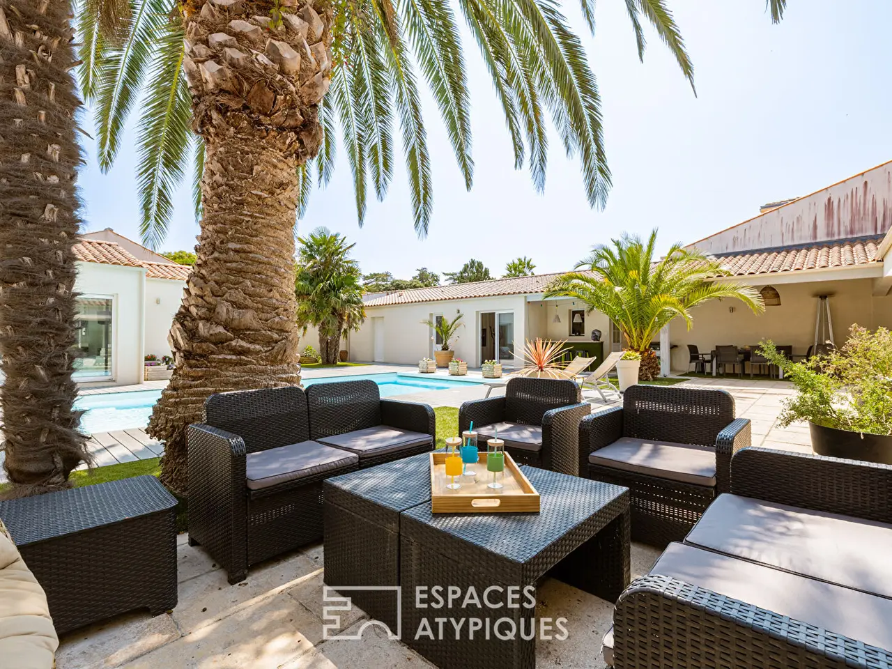 Located just minutes from the coast, this contemporary single-story villa with a swimming pool offers approximately 274 sqm of living space on an enclosed and landscaped plot of over 940 sqm. Perfectly integrated into its surroundings, it combines modern style with comfortable features in a setting that is both practical and peaceful. The interior offers a vast living space bathed in light thanks to its bay windows opening directly onto the terrace and garden. The main room houses a welcoming living room and a contemporary equipped kitchen, creating a central space conducive to moments of sharing. The sleeping area consists of several comfortable bedrooms, including a master suite with a shower room and dressing room, offering privacy and functionality. A rare asset completes this ensemble: a true private cinema room, equipped with armchairs and an optimal audio system, adding a unique immersive experience to the heart of the house. The exterior spaces harmoniously extend the interior volumes. In the heart of the garden, a heated swimming pool is surrounded by a vast terrace, a true invitation to relax. Palm trees and local species structure the green spaces, creating an ideal Mediterranean atmosphere. Different spaces allow you to fully enjoy pleasant days by the sea. Just a few minutes from the beaches, shops, and schools, this contemporary single-story house near the sea enjoys a privileged location, combining residential calm and urban proximity. With its refined architecture and generous volumes, this villa perfectly embodies the spirit of atypical properties. A double garage of approximately 46m2 and two parking spaces complete this ensemble. ENERGY CLASS: C / CLIMATE CLASS: C. Estimated average amount of annual energy expenditure for standard use, established using 2021 energy prices: between EUR4,026 and EUR5,448.REF. EALR2140Additional information* 7 rooms* 4 bedrooms* Outdoor space : 940 SQM* Property tax : 3 540 €Energy Performance CertificateEPC : 117 kWhEP/m2.year* A 450GHG : 25 kgeqCO2/m2.year* A 80Agency feesThe fees include VAT and are payable by the vendorMediatorMediation Franchise-Consommateurswww.mediation-franchise.com29 Boulevard de Courcelles 75008 ParisInformation on the risks to which this property is exposed is available on the Geohazards website : www.georisques.gouv.fr