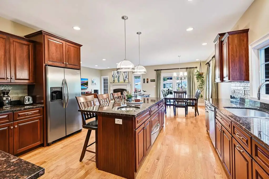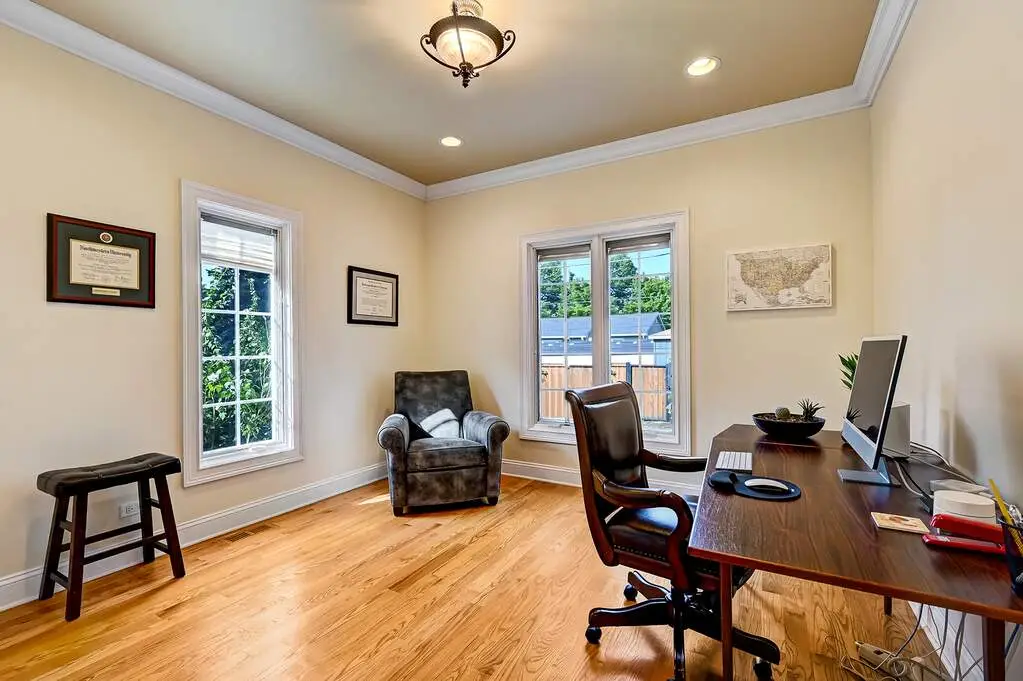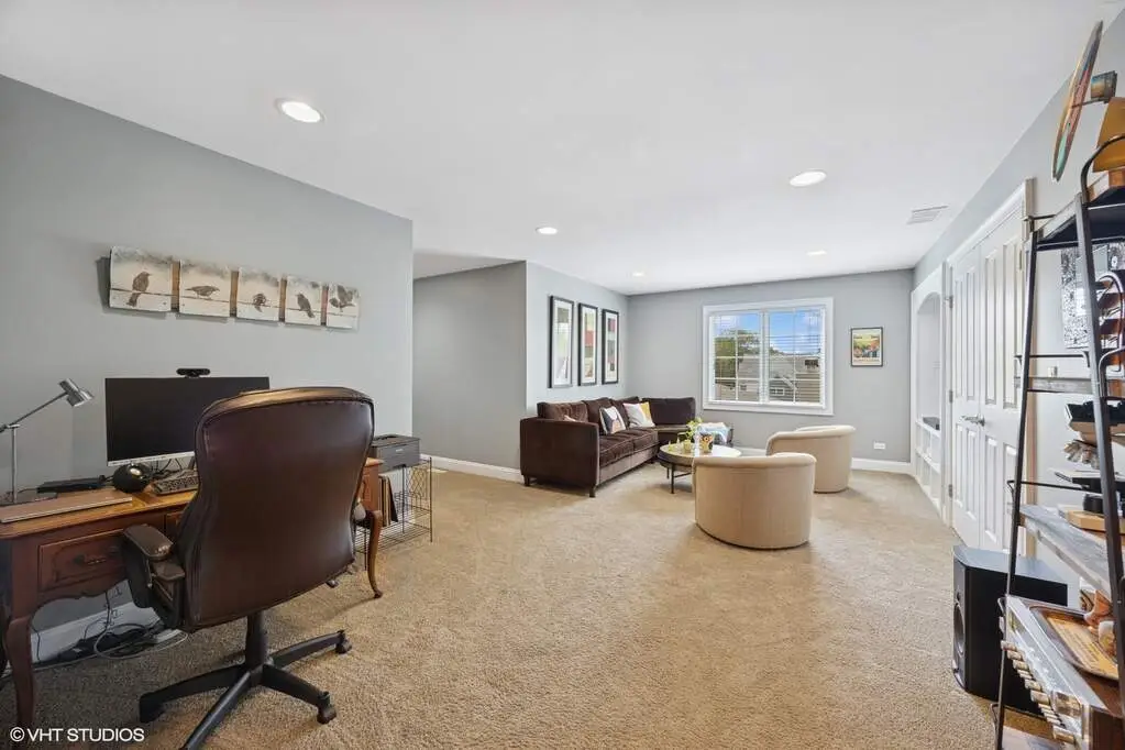 Striking all brick home built in 2004, ideally situated in the highly sought-after LaGrange Country Club area. Boasting timeless curb appeal, situated on an expansive 75-foot-wide lot and features an attached three-car garage, creating an impressive exterior presence. Impeccably maintained, enhanced by new roof and AC unit, offering peace of mind and valuable long-term benefits. Welcoming two-story foyer highlights a grand staircase and captivating views of the second-floor wraparound landing, offering architectural elegance from the moment you enter. The front living room flows seamlessly into the spacious dining room, framed by oversized doorways with distinctive transom windows that add charm. The modern kitchen, equipped with high-end appliances, a central island and casual dining area, opens to a warm family room overlooking the expansive outdoor porch-perfect for everyday living and entertaining. The first floor also includes a generously sized home office and a highly functional mudroom for convenience and organization. Upstairs, four spacious bedrooms and three full bathrooms include a luxurious primary suite, a private guest suite and a conveniently located laundry room-all with ample closet space. Finished third floor offers versatile space for a recreation room or additional bedroom. Expansive basement, with impressive ceiling height, invites endless customization-ideal for a home theater, fitness center or entertainment zone. The backyard is a private oasis, featuring a spacious porch overlooking a lower blue-stone patio, lush professional landscaping and a full privacy fence for tranquility and seclusion. Combining elegant design, thoughtful functionality and a prime location near top rated schools. This stunning home offers a perfect blend of comfort and luxury.