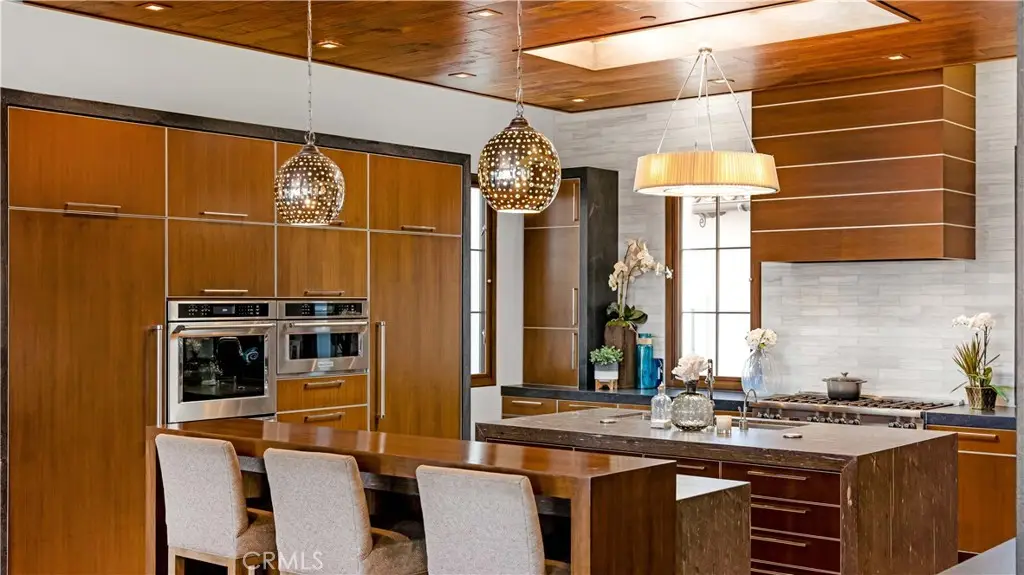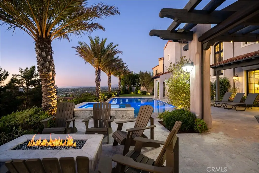 Discover the Luxury California Lifestyle at 2 Thomas Rd! This breathtaking, custom home offers approx. 7,476 sf. of luxury living on a sprawling lot with ocean and Saddleback Mountain views. This home is more than just a place to live—it's a lifestyle. Inside you are greeted by the warmth of aged Mediterranean, wire-brushed, wood floors, set against soft, neutral tones throughout the home. The contemporary Adobe-style exterior complements the stunning Walnut woodwork inlays seen in cabinetry, baseboards, ceilings, and doors. At the heart of the home is the gourmet family kitchen, a chef’s dream with 2 oversized islands, a breakfast bar, soft-close cabinetry and weathered marble countertops. The state-of-the-art appliances include a Sub-Zero double refrigerator, freezer, a Viking 8-burner range, a KitchenAid double oven and microwave, making both everyday meals and grand entertaining a breeze. And don’t forget the cozy breakfast nook with a wood coffered ceiling, where you can enjoy your morning coffee while sunlight filters through the skylight and adjacent windows. The great room seamlessly blends style and function with walnut ceilings, a designer fireplace, and panoramic sliding doors that open to reveal an entertainer's dream backyard. Take in the views while relaxing by the custom saltwater pool and spa. Host unforgettable gatherings with the outdoor kitchen, travertine decking, and a hidden automated TV station. For fitness and fun, head downstairs where a full media room, game room, weight room, and another kitchen await. Whether it’s movie night in the home theater or a competitive game of basketball on your own half-court, this space has been designed for maximum enjoyment. The primary suite is a serene sanctuary with a custom wood-paneled fireplace, motorized sunset shades, and dual walk-in closets with custom-built-ins. The spa-like primary bath features a steam shower, rain shower and dual vanities, creating the perfect relaxation retreat. Rounding out this luxurious property are flex spaces like a dedicated office, a home management and craft room, an upstairs loft, and a four-car garage with custom storage solutions. The entire home is automated with the Crestron and iAquaLink Smart Home systems offering effortless control of lights, climate, pool and security—all from your phone or tablet. This home is the ultimate expression of California luxury, blending modern convenience with timeless elegance. Your Luxury California Lifestyle Awaits!