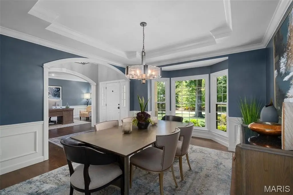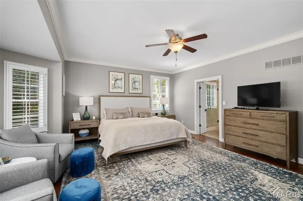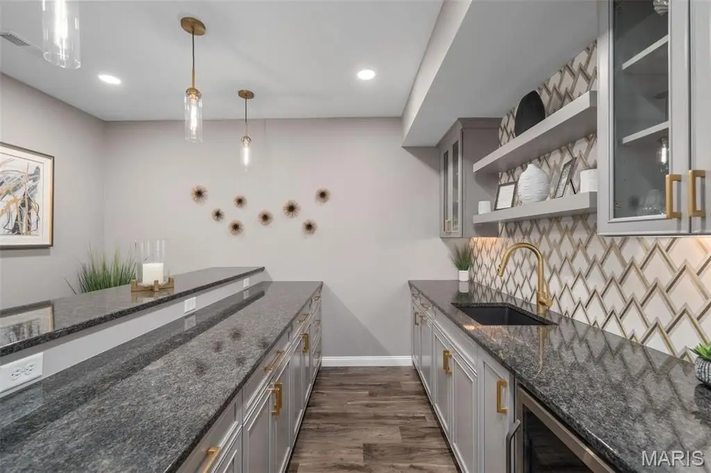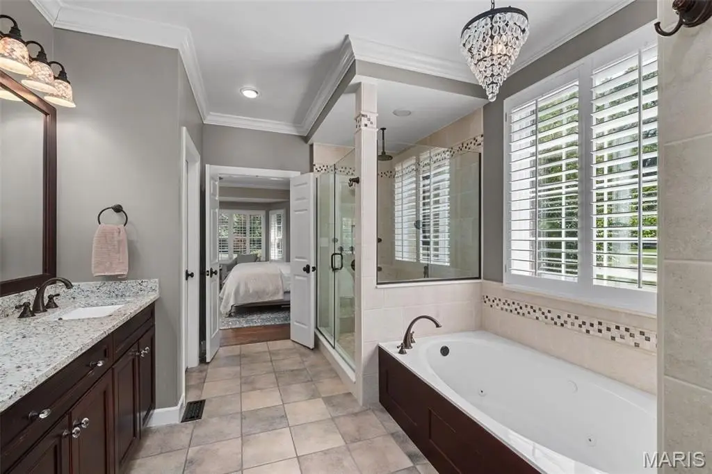 Located in Ladue, Daniel Rd offers an exceptional blend of updated luxury and comfort throughout. The current owners have meticulously maintained this five bedroom, five and a half home as well as curating the following renovations: new custom kitchen with high end appliances, new wet bar in great rm with herringbone backsplash, updated powder rm, main floor laundry, refinished flooring, updated staircase with new railing and iron spindles, renovation of lower level, expanding the square footage to include an entertaining wet bar, updated full bath, gym and so much more. The private backyard offers renovated spaces to complement the beautiful pool including new and expanded pool decking, patio, firepit, pergola and landscape lighting. A true oasis. Main floor primary, cozy family rm with fireplace and so much room to spread out make this a true standout to our market. Updated HVAC, Ladue schools.