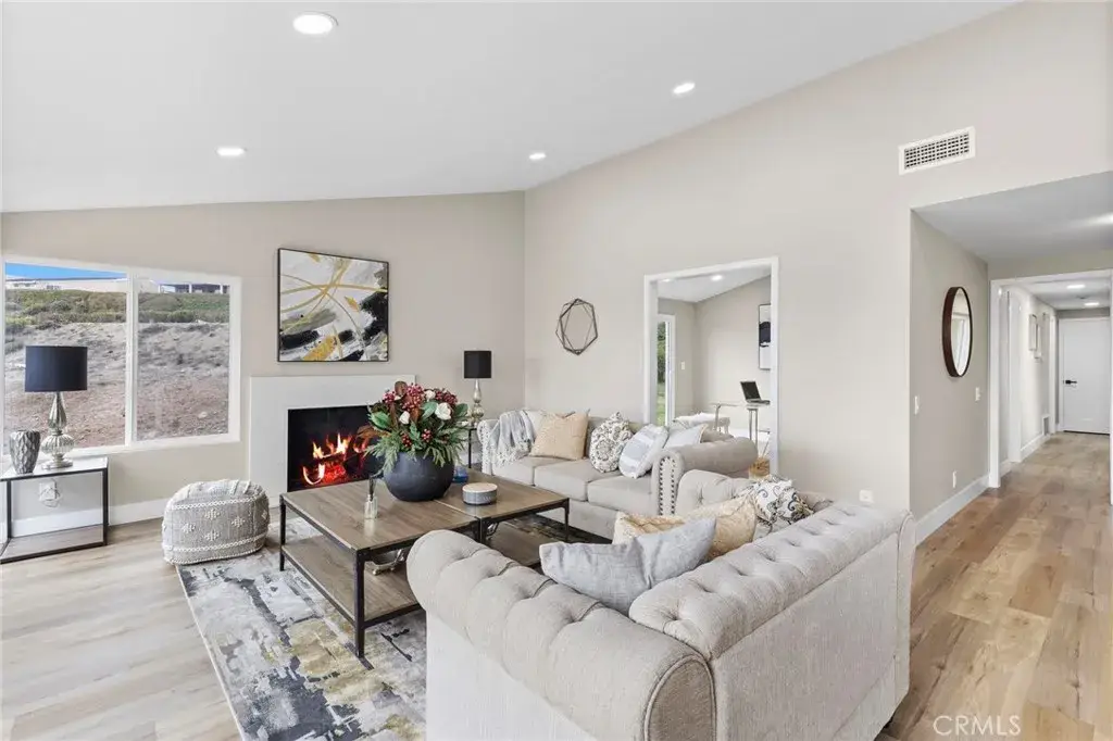 Exquisite Fully Remodeled Home with Breathtaking Views, Summit Monarch !. Experience the pinnacle of luxury living in this completely reimagined single-story masterpiece nestled in the prestigious Monarch Summit 1 community. Thoughtfully redesigned with high-end finishes and modern sophistication, this stunning home boasts unparalleled panoramic views of Saddleback Mountain and city lights. Fully permitted renovation with high end upgrades throughout. Step inside to discover a seamless open-concept floor plan, meticulously upgraded with designer touches throughout. The gourmet kitchen is a chefs dream, featuring top-of-the-line stainless steel appliances, custom cabinetry, quartz countertops, and an expansive waterfall island, perfect for entertaining. The living area is bathed in natural light, accentuated by grand picture windows, a sleek fireplace, and exquisite wood flooring. The luxurious primary suite offers direct access to a private yard, a spa-inspired ensuite bath with a dual vanity, oversized walk-in shower, and designer fixtures. The secondary bedrooms are equally well-appointed, with one easily convertible back into an office or guest space. Notable highlights include brand-new AC, energy-efficient windows, elegant lighting fixtures, an indoor laundry room, and a fully finished two-car garage. The private outdoor spaces provide the perfect setting for relaxation or entertaining while enjoying the mesmerizing views. Situated just minutes from Laguna Niguel Golf Course, world-class beaches, upscale shopping, and dining, this home is an exceptional opportunity for