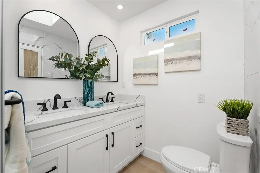 Spectacularly remodeled single-level home on a quiet single-loaded cul-de-sac offers breathtaking mountain and city light views and is completely move-in ready! From the moment you enter through the gated courtyard, you'll appreciate the quality and attention to detail throughout this beautiful home. The light and bright kitchen features new Quartz counters, new soft-close wood cabinets, new stainless steel appliances, and a spacious waterfall island with cooktop, microwave and bar seating. The adjacent dining area flows seamlessly into the great room with wood beam ceilings, recessed lighting, and a cozy fireplace. The primary suite offers a private patio and a gorgeous remodeled bathroom with Quartz counters, dual sinks and a walk-in shower. Each secondary bedroom has its own fully remodeled bathroom and views of the lush backyard. Indoor laundry room includes brand new washer and dryer and home has direct access to the 2 car garage. Additional upgrades include new COREtec luxury vinyl plank flooring, new windows, new solid wood doors, fresh paint, new AC, new roof, re-piped and a new tankless water heater. The expansive 7,155 sq ft lot provides exceptional privacy, a lush grassy lawn, two patio areas, and sweeping panoramic views. Located within walking distance to the community pool, pickleball courts, volleyball, basketball, and playground. Just minutes to the beach and harbor, close to excellent schools, and low tax rate -- this is the perfect place to call home!