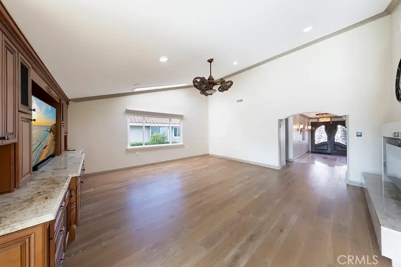 Welcome home to 5446 Alta Vista! This beautifully expanded and remodeled Columbia floor plan offers over 2400 square feet. A fully DETACHED 3 bedroom, 2 bath single level home boasts numerous amenities. The 2 car attached garage with DIRECT access into the home also has a private courtyard. Marble entryway. Remodeled gourmet kitchen with large center island. The patio off of the primary bedroom has been enclosed providing for a very spacious bedroom. The primary bath boasts a Kohler walk in bathtub and shower combo, fully remodeled. The living room offers a stone fireplace, and built in home entertainment system with flat screen TV. The rear patio has also been enclosed with beautiful views and abundant natural light. Additional amenities: hardwood floors, 4 skylights, newer HVAC and AC, newer water heater and heat pump and recently termite tented in the Summer of 2025. This beautiful home is one of Laguna Woods premiere properties and is ready for you!
