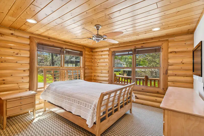 Discover refined luxury in this exceptional log home, nestled in the sought-after Lake Geneva Beach Association community with exclusive lake access. Perfectly designed for upscale living and effortless entertaining. This beautifully crafted retreat offers the ideal balance of sophistication, comfort, and outdoor adventure. The expansive open-concept features rich wood finishes, soaring ceilings, and panoramic views that bring the outdoors in. Downstairs, a spacious rec room provides a versatile area for games, movies, or quiet family time. Step outside to enjoy the beautifully landscaped grounds with a built-in firepit. Offering swimming and boating access, this home is your family's getaway to lakeside luxury.