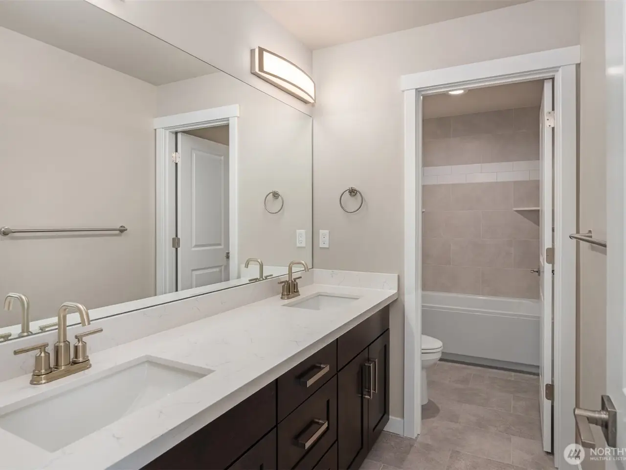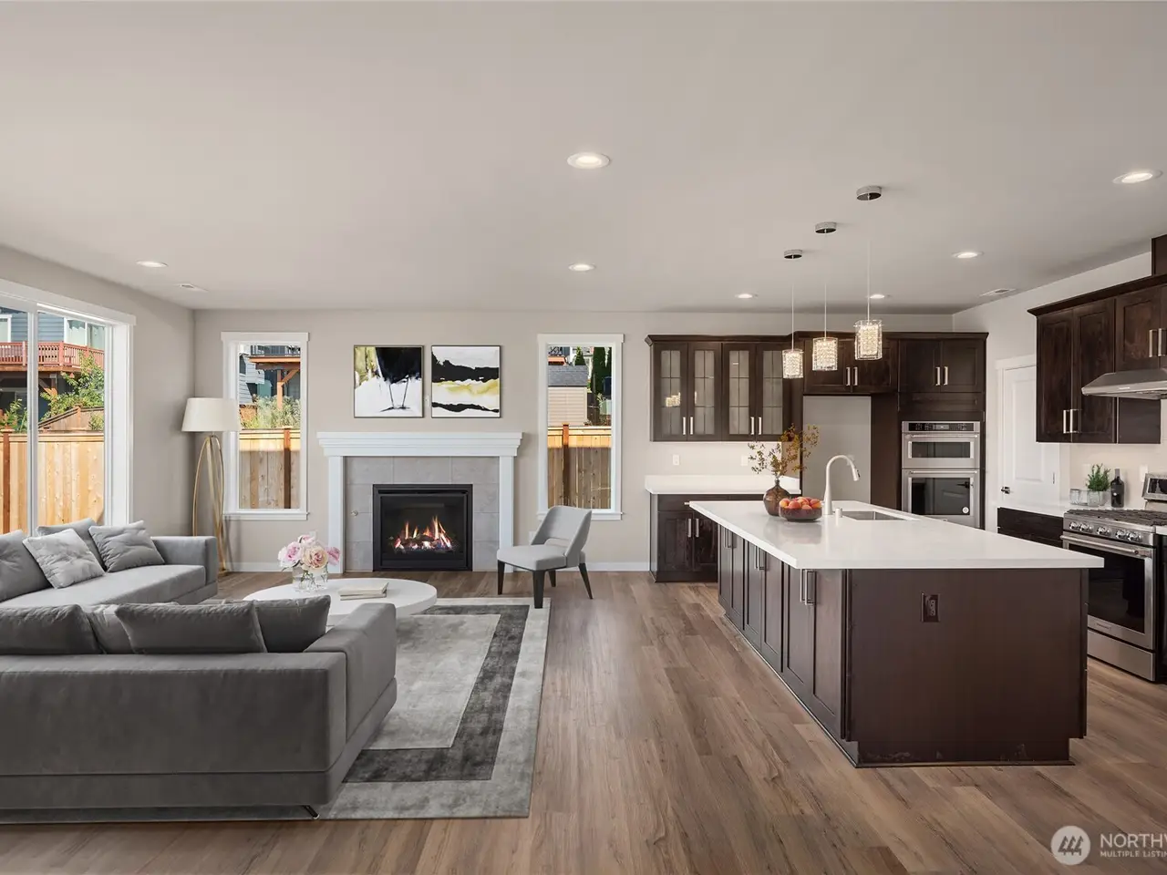 Stunning new construction in Lake Stevens! Hillcrest Estates offers breathtaking views & luxury living. Enjoy a massive back deck that showcases sweeping vistas of the Olympic Mountains, the city skyline, and picturesque sunsets--an entertainer's dream. Inside, the open-concept floor plan is designed to maximize natural light w/oversized windows throughout. The gourmet kitchen, featuring quartz countertops, and the luxurious primary suite w/heated floors, create an elevated living experience. A spacious 3 car gar provides ample storage, and the outdoor amenities, including a gas fireplace, gas BBQ stub out, and hot tub hookup, make this home perfect for all seasons.