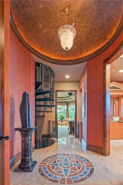 With an expansive lakefront view, this home was designed for grand-scale entertaining yet tranquil retreat living. A museum-worthy 1,000 bottle wine room and glass dome-topped, free-floating 3 story spiral staircase greet you upon entering custom front doors. Prepare to be wowed by a 26-foot barrel wood ceiling, extending thru the home, and 900-gallon living reef, saltwater aquarium. Custom, high-end finishes/fixtures throughout include natural stones, rare woods, Labradorite main kitchen countertops, and hand-blown glass Chihuly chandelier. Stunning architectural ceilings include one-of-a-kind dining room ceiling - truly a work of art. Private Primary Suite hallway with marble mosaic floor, beverage bar, and stairway to the library & gym/spa. Suite includes fireplace, home theater system, steam shower, and deck access. Telescoping enclosure enables year-round use of infinity-edge pool. Lovely al fresco deck-dining with outdoor kitchen, custom granite 22-person table, fireplace, TV, & lake views. Indoors connects to outside via LL bi-folding doors, spa room and deck staircase. Lush, extensively landscaped grounds include gas torches, fountains, waterfalls, lighting, & integrated, computer-driven bug suppression system. Double boat dock with 4 hydro lifts. Appreciate the convenience & comfort of a 5 stop/2 door elevator, the latest smart home integrated system, 2 laundry rooms, dog shower, greenhouse, back-up generators, and heated driveway, steps, deck, main & lower-level European limestone floors. Midwestern-friendly, the Lake Winnebago community and well-stocked, 400-acre lake include many amenities. Why vacation at the lake when you can live the lifestyle every day? Home located less than 30 min from KC, in Lee's Summit school district.