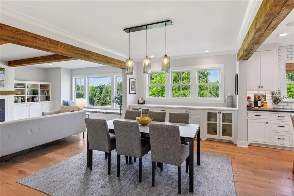 From the moment you step into this Modern Farmhouse, you’ll notice the thoughtful design & exquisite finishes that set this David Charlez Designs home apart. It features built ins galore, beautiful solid white oak floors on both levels, four fireplaces (three indoors) and special touches in every room, from solid wood beams and barnwood accents to wainscoting and shiplap. Nestled on one of Lakeville's most sought-after streets w/ beautiful homes and spacious private lots, you can walk or bike to schools, shopping, restaurants & trails. The chef-inspired kitchen is a true showstopper, featuring custom cabinetry, high-end appliances & a striking blend of quartz & soapstone countertops. A matching butler’s pantry offers generous prep & storage space—perfect for hosting. The open layout flows seamlessly into the dining area w/ custom buffet & a warm, inviting living room centered around a gas fireplace, solid wood beams & a cozy window seat. Retreat to the serene primary suite boasting its own gas fireplace and a spa-like bath complete w/ heated floors, a soaking tub, dual shower heads & a huge walk-in closet w/ custom built-ins. A private main-level laundry room off the large mudroom adds everyday ease & convenience. The lower level is ideal for entertaining w/ a spacious family room with gas fireplace, built-in full-size bar with custom zinc top & a media center for audiophiles. There are also two additional bedrooms sharing a Jack-and-Jill bath, a separate half bath, dedicated office for those who work from home, a flexible bonus room and generous storage. Step outside to an expansive patio w/ beautiful custom-built wood-burning fireplace overlooking the large, flat backyard. The garage features a tandem third stall for bikes, golf carts, bikes or car storage. Every detail has been carefully curated. Schedule your private showing today—homes w/ this level of thoughtfulness, practicality and quality are a rare find!