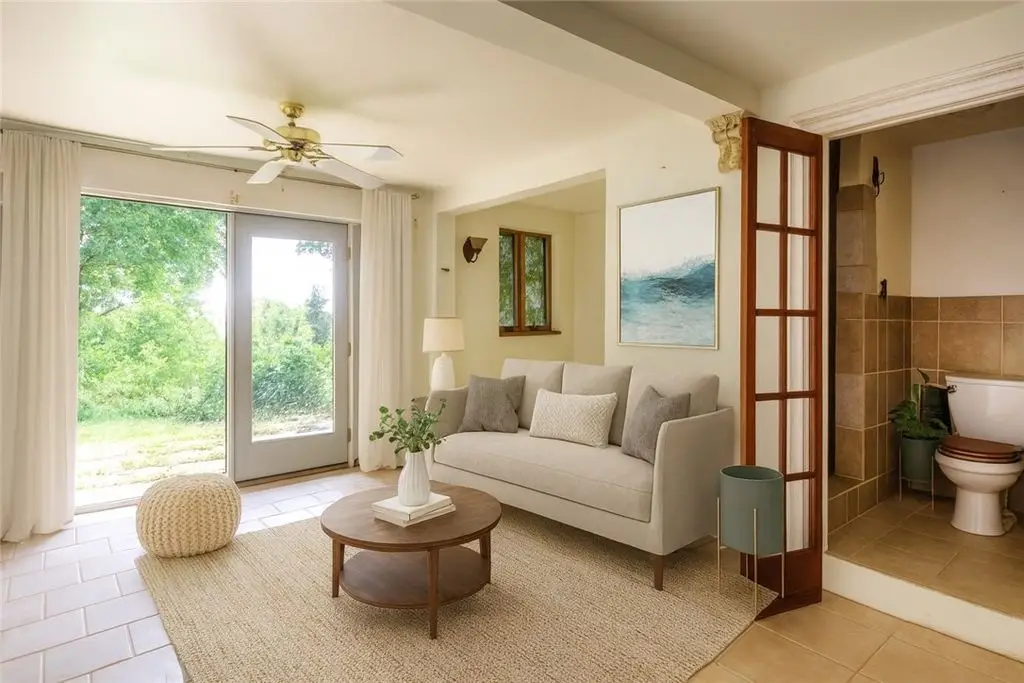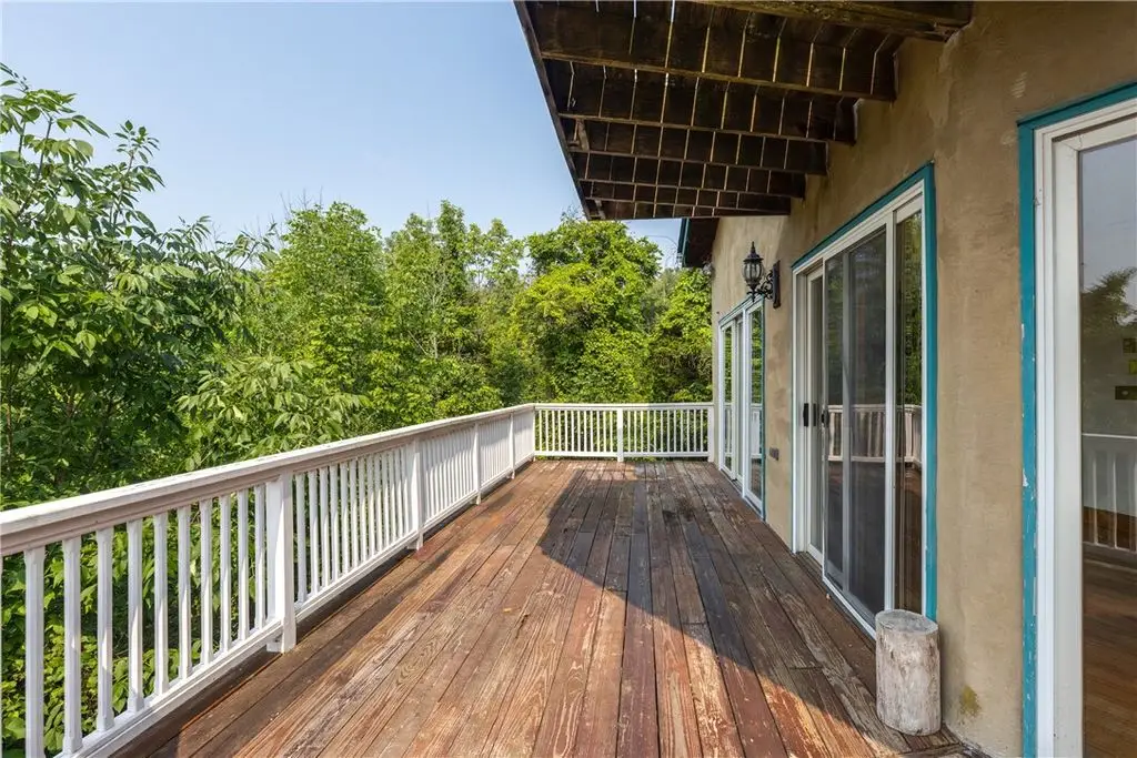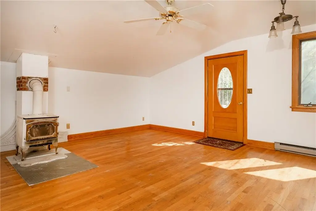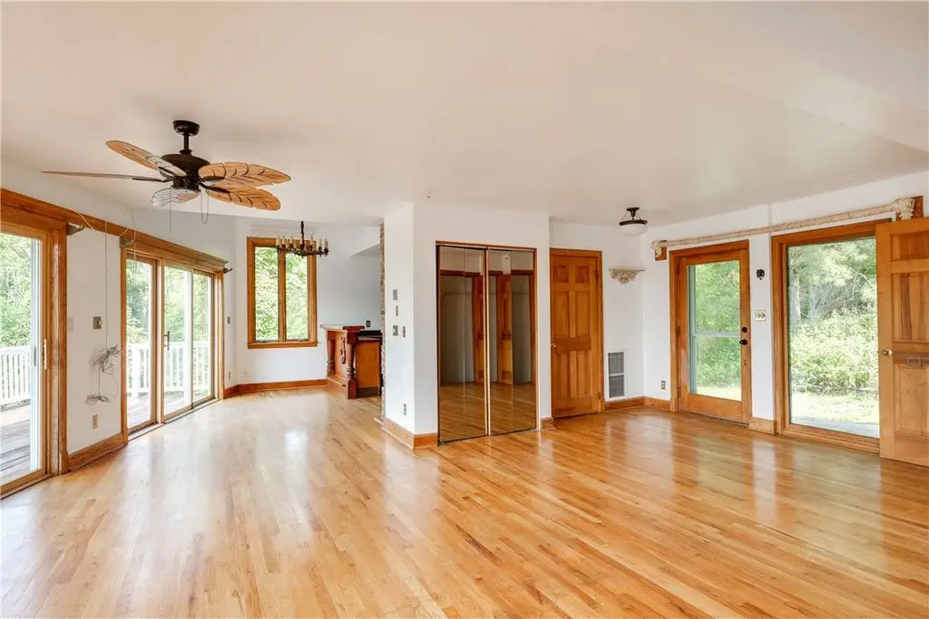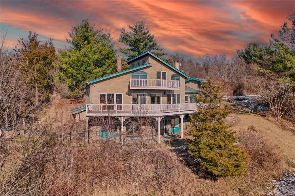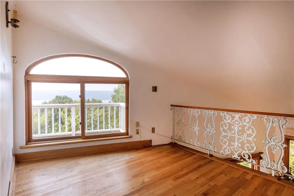 Perched on 1.82 acres with stunning views of Cayuga Lake, this 4-bedroom, 4-bath contemporary home offers space, versatility, and breathtaking scenery. The open-concept main living area features a spacious living/dining room and kitchen, anchored by a cozy wood-burning fireplace and opening to an expansive deck overlooking the lake. Gleaming hardwood floors flow throughout, leading to two distinct private bedroom suites one with a wood stove, full bath, and office space, and the other with its own bath and loft. The lower level offers even more possibilities with a generous walk-out living area, kitchenette, full bath, and gas fireplace. Sliding glass doors open to a separate studio space complete with another full bath ideal for guests, an office, or creative pursuits. Recent updates include a new forced-air furnace. Outside, multiple decks and patios provide the perfect spots to take in the views, while a private hot tub offers the ultimate place to relax and unwind.