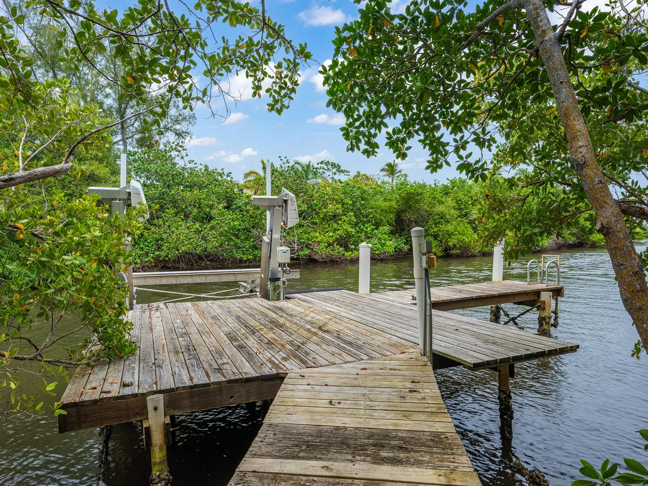 Key West-style compound on Hypoluxo Island between PB and Manalapan. Tropical plantings lead to a sunny great room overlooking a private oasis of palms and an inviting pool, spa and firepit. Beyond, along 70' of waterfront, a private dock with lift beckons. On offer is an open concept kitchen with gas cooktop, 400 bottle wine closet, screened porch, spacious master suite with deck, 3 or 4 additional bedrooms and 4 full baths. The separate guest cottage accommodates 4. Garage parking for 4+ with extra space for hobbies and storage. Beach access by foot, bike or car.