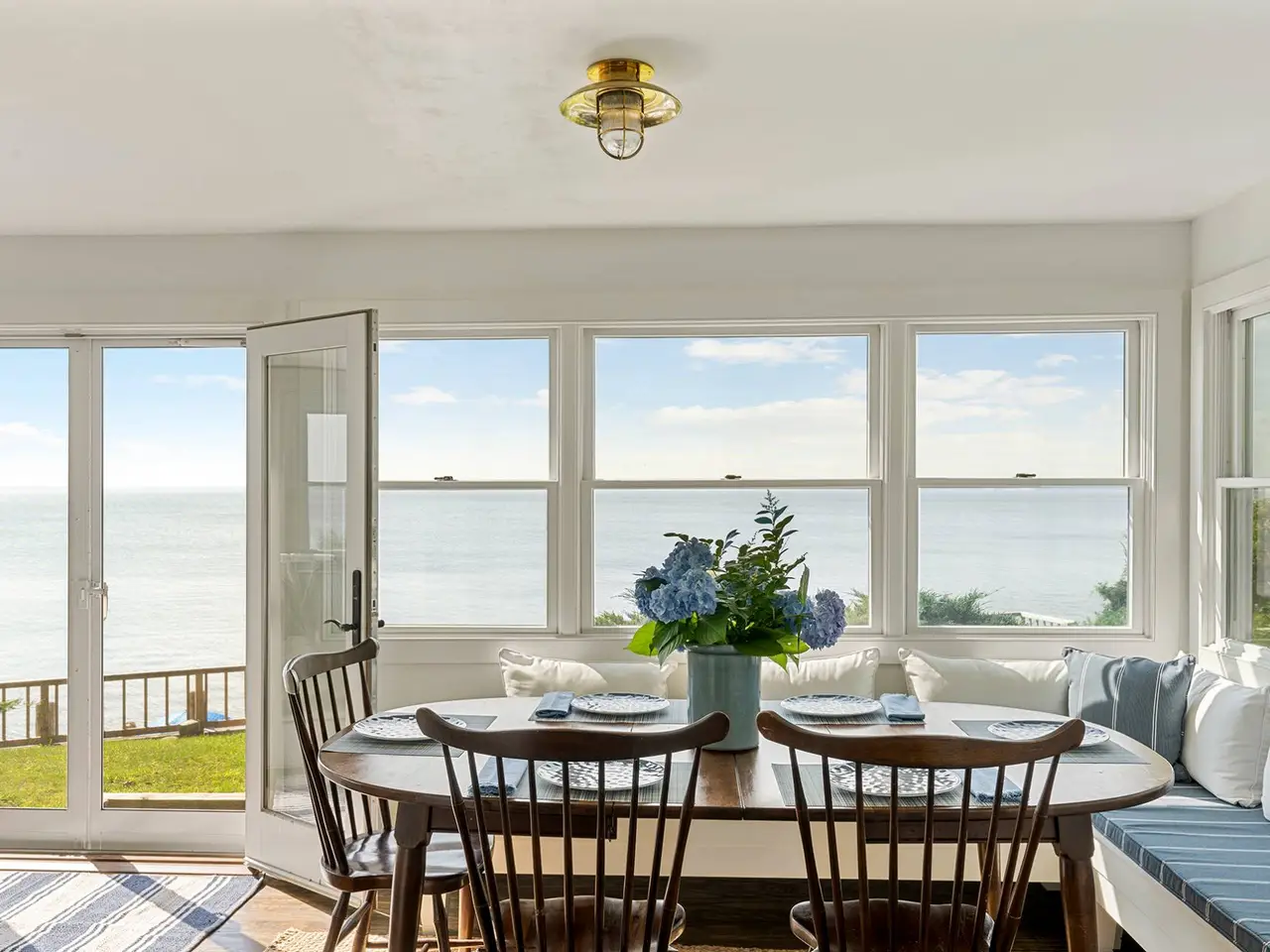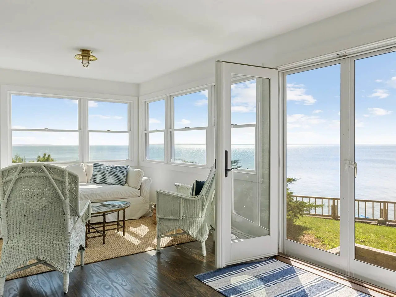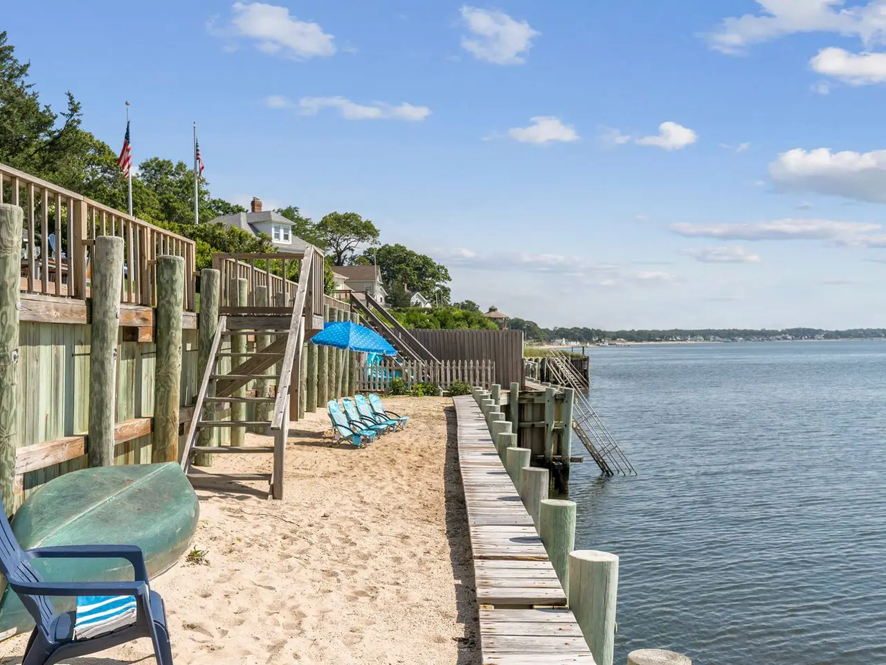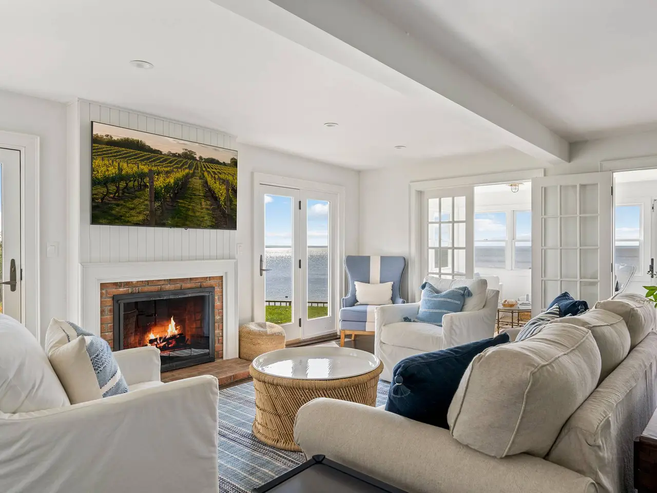 Stylish beach cottage with stunning water views overlooking Peconic Bay . Newly renovated with a sophisticated beach vibe, three bed and one bath with eating and lounge areas overlooking the water. Sandy dock to launch your kayak, go for a daily swim or meditate at the water's edge. Wood burning fireplace for cool evenings in the late Summer & Fall . Outside shower. Central air /heat on ground floor. Please note there is a lightly used association 'right of way' to the water to the left of the property. Listing ID:892591