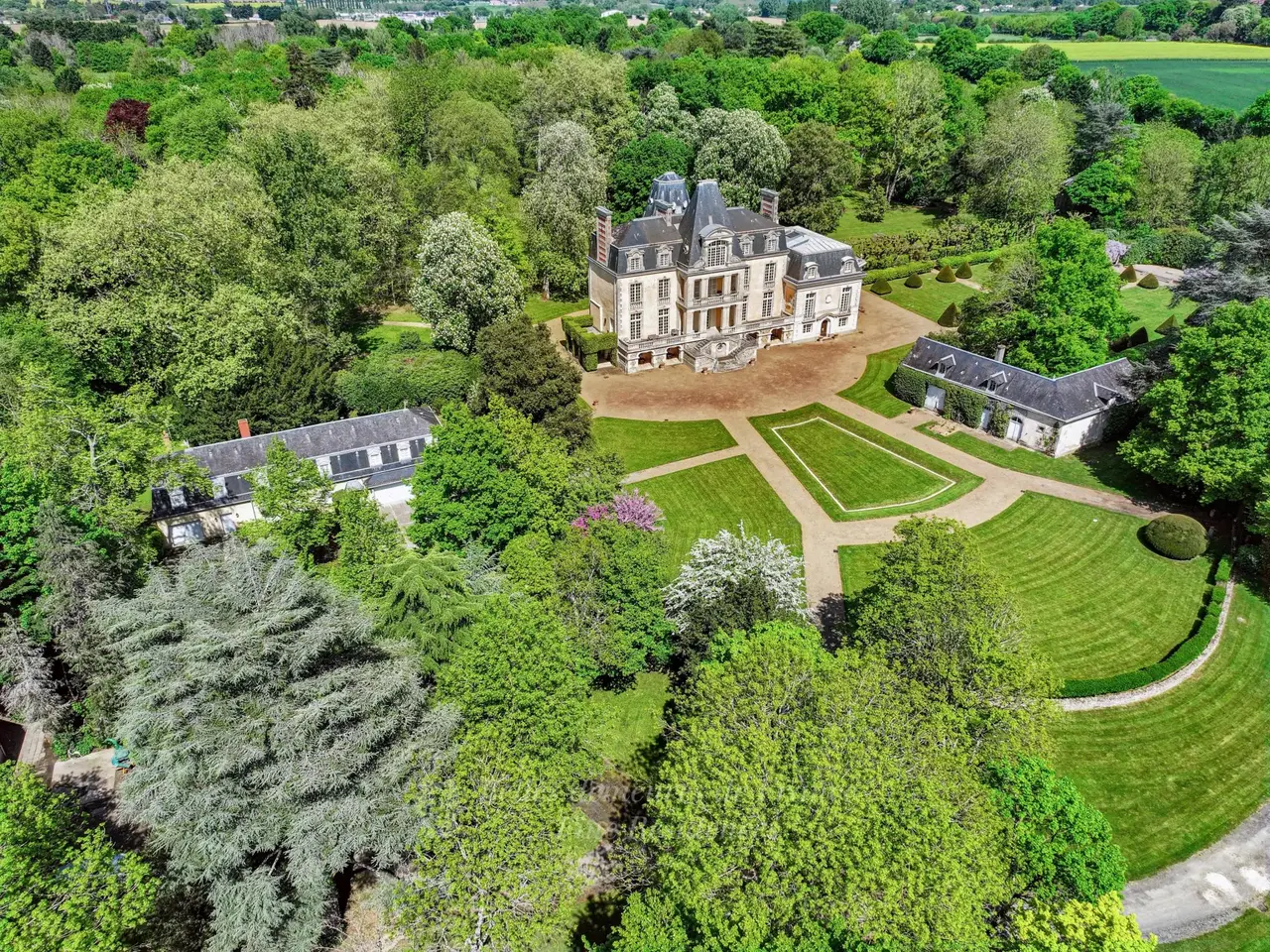 Sole Agent. 80-page detailed file on request. This elegant 18th century chateau is located in the immediate vicinity of Le Mans, in the Sarthe department and the Pays de la Loire region. Remodelled in the late 19th century, it offers about 1220 sqm of living space on four floors (not counting the cellars and attics) which has been meticulously restored over the years by the current owners and is in excellent condition. The ground floor and basement comprise magnificent living and reception rooms (about 390 square meters in total), one of which boasts remarkable Louis XV style panelling. The upper floors comprise six bedrooms, two studies, a monumental library and five bathrooms. A 60 metre-long terrace is fully south-facing. Several outbuildings include a Mansart-style two bed guest pavilion, a three bed caretaker’s lodge, former stables, extensive garages, and an old blockhouse surrounded by leafy greenery. The near 9 hectares of parkland and elegant landscaped gardens are planted with mature trees and feature a pond, meadows and a woodland bridle path. In a beautiful environment benefiting from easy rail or road access from the capital, this superb property is perfectly maintained with no significant work required.