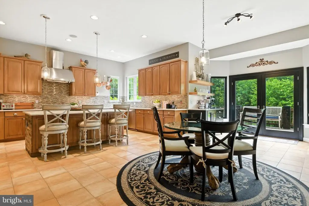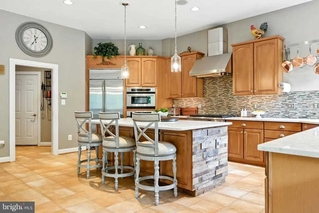 Perfectly nestled on a private 0.46-acre lot backing to mature trees, this stunning home offers over 6,000 square feet of beautiful living space - an entertainer's dream and a peaceful retreat in one. From the moment you step onto the deep, southern-style front porch, you'll feel the charm and warmth of this home. Inside, a light-filled open floor plan invites you to gather and relax. The remodeled kitchen is a true showstopper with quartz countertops, stainless steel appliances, center island, pantry, mudroom, and custom beverage station. The adjacent family room with stone fireplace is perfect for cozy evenings, while the formal living and dining rooms provide elegant spaces for special occasions. A private main-level office is ideal for working from home. Upstairs, the expansive primary suite is a luxurious escape with a sitting room, fireplace, two custom walk-in closets, and a spa-inspired bath featuring a soaking tub, walk-in shower, and dual vanities. Three additional bedrooms include one with a private en-suite bath, while the other two share a full bath. Upper-level laundry adds convenience. The finished walkout lower level is where the fun begins, a spacious rec room with fireplace, game area, and sleek wet bar create the ultimate hangout zone. A bonus room, additional fifth bedroom, full bath, and large storage space complete the lower level. Enjoy the best of outdoor living with an expansive deck and lower-level patio - perfect spots to entertain or unwind with serene wooded views. The community offers an outdoor pool, tennis courts, basketball, tot lots and more! And it is just minutes from the MARC train for easy commuting to Washington, DC. This home truly has it all - space, style, and the perfect setting. Come experience the lifestyle you've been dreaming of.