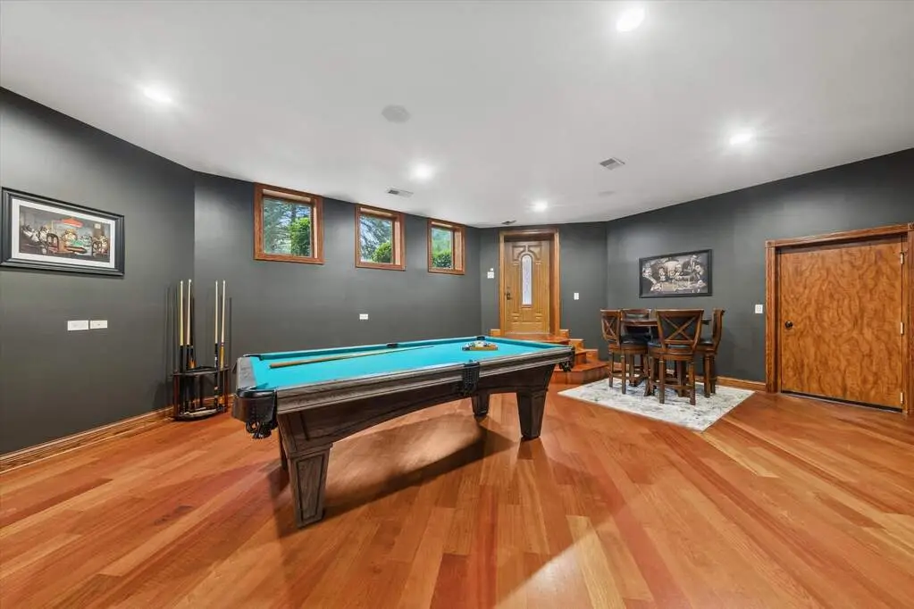 An exceptional opportunity on one of Lemont's most beautiful and private enclaves. Nestled on a sprawling almost 2 acres, this custom estate offers unmatched privacy and elegance -perfectly positioned just minutes from charming downtown Lemont, top-rated schools, golf courses, and easy expressway access. Behind a private gated entry, this impressive residence boasts timeless architectural design with 6 beds and 5.2 baths, soaring ceilings, and sun-drenched living spaces. The expansive main level features a grand foyer, formal dining room, chef's kitchen with high-end appliances, a view of a gorgeous pond, and a dramatic great room with light filled windows overlooking the serene grounds. The luxurious primary suite is a true retreat with an amazing balcony recently redone with new tile. A finished lower level offers incredible high ceilings, a full kitchen, billiards room, and theater style recreation room, plus an additional bedroom and huge office space. Outside, enjoy professionally landscaped grounds with mature trees and hedges, multiple patios, and a brand-new landscaped pool and yard that takes the stately grounds to the next level. The main level includes an in-law suite complete with kitchen, en suite bath, and separate living room and entrance.