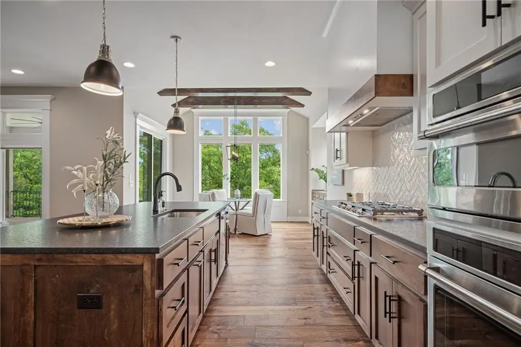 Stunning James Engle Custom Berkley II 1.5-Story in Timber Rock! This better-than-new home sits on a private cul-de-sac lot in one of Lenexa's most desirable communities. Breathtaking views from the moment you cross the threshold with upgrades around every corner. The main floor features a chef's kitchen with custom range hood, upgraded counters, SS appliances, prep kitchen and walk-in butler's pantry, and open views to the great room. The spacious primary suite offers a spa-like bath, custom closet with built-ins, and direct access to laundry. Upstairs, find 3 large bedrooms with private baths & walk-in closets, plus a light-filled loft. The finished basement is built for entertaining with a custom bar, theater room, and full bath. Enjoy the oversized covered deck overlooking the private yard. Timber Rock amenities include resort-style pool, clubhouse, playground, walking trails & more. Served by award-winning Olathe schools: Manchester Park Elementary, Prairie Trail Middle, Olathe Northwest High. This is luxury living at its finest - schedule your showing today!