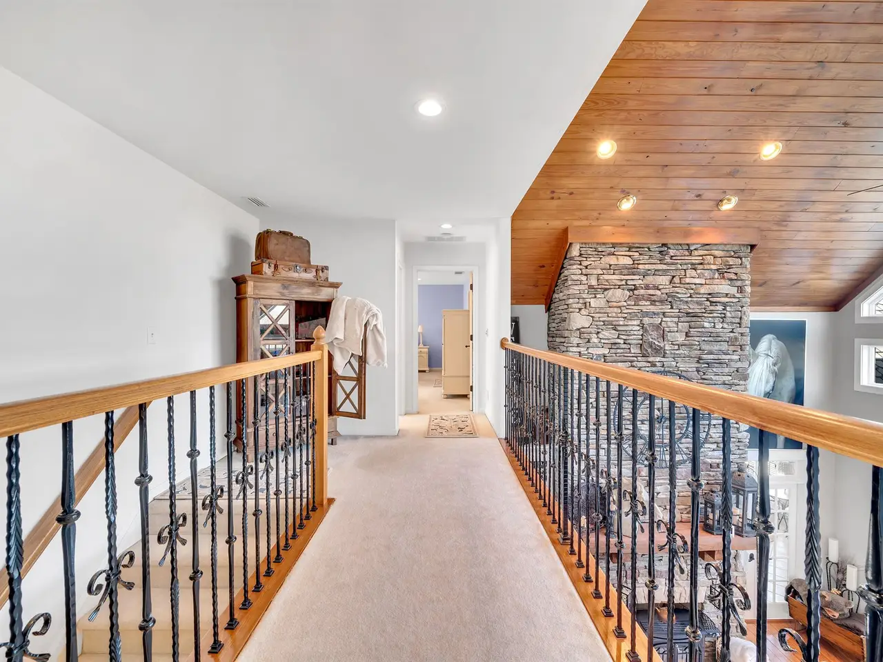 - Stone fireplace