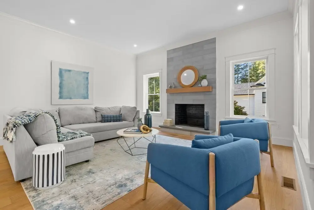 An exceptional NEW 6-bedroom, 5.5-bath modern farmhouse colonial, perfectly positioned in one of Lexington’s most coveted neighborhoods. Thoughtfully designed for both everyday comfort and sophisticated entertaining, this sun-drenched, southern-facing home showcases refined craftsmanship and timeless architectural details. Inside, wide-plank white oak floors, soaring ceilings, and elegant millwork create a sense of warmth and sophistication. At the heart of the home, the chef’s kitchen impresses with a large center island, premium appliances, wet bar, service pantry, and a sun-filled breakfast room opening to a private deck. A first-floor suite with ensuite bath offers flexibility for guests or a home office. Upstairs, the serene primary suite features a spa-like bath, dressing room, and views of the private yard. Sited on a large, tranquil lot, with mahogany porch & deck, and 3-car garage, this home blends modern luxury with classic New England charm - a rare Lexington gem.