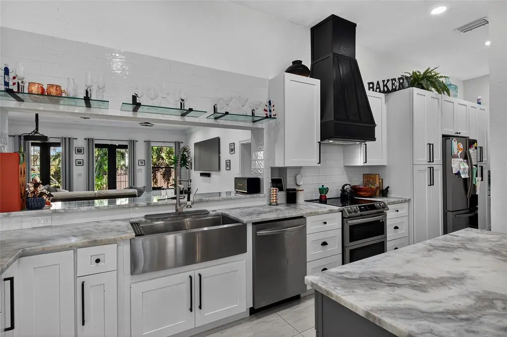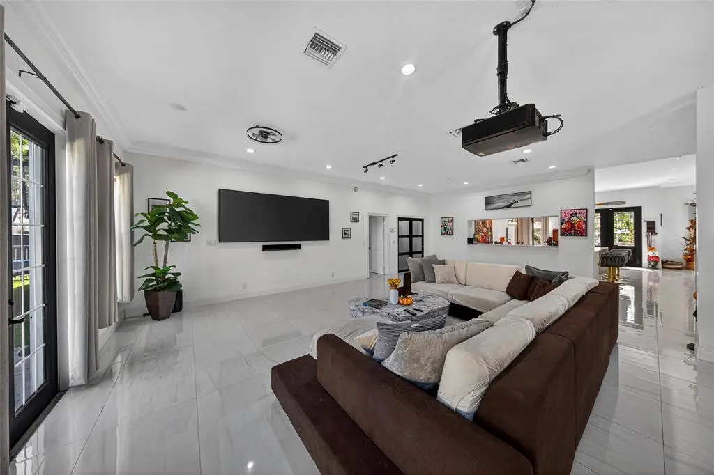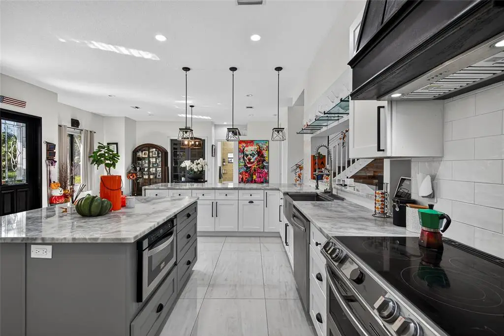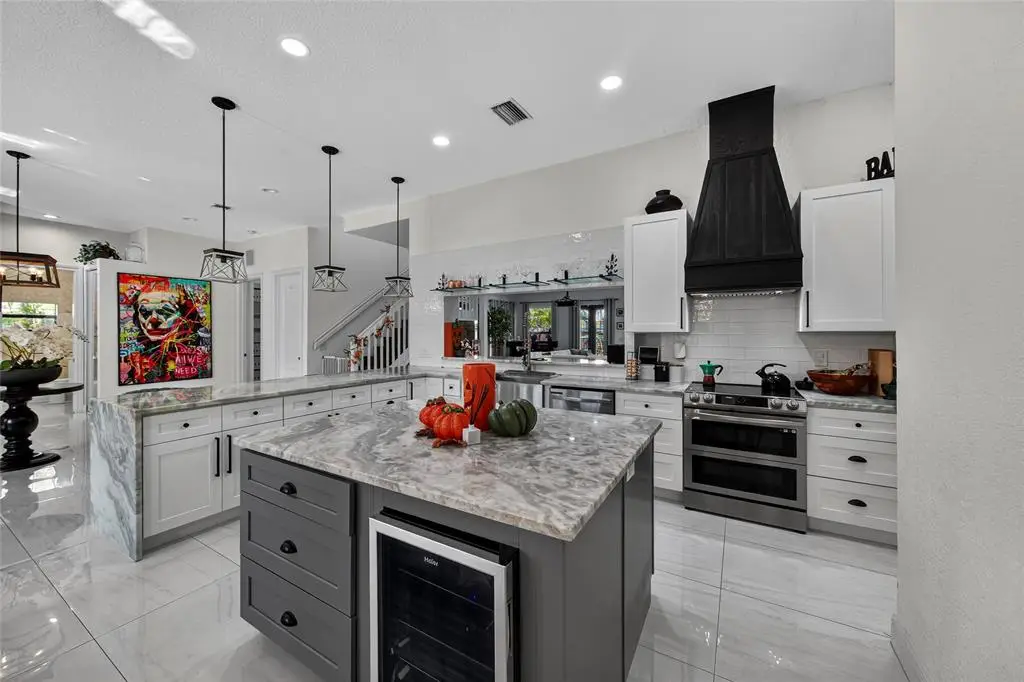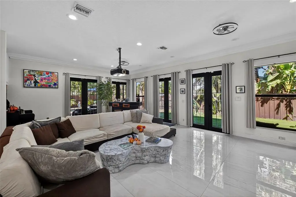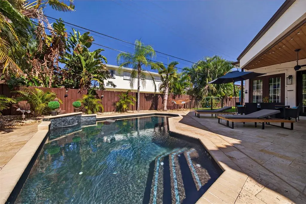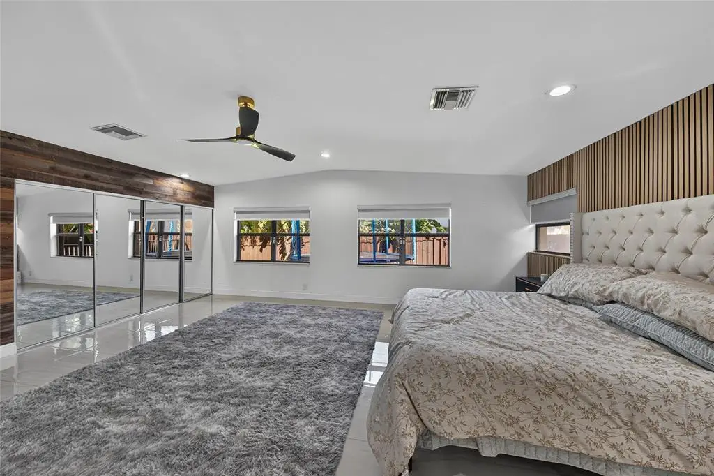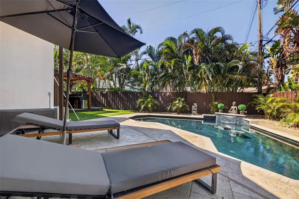 Spectacular renovated 6BD/6BA estate on an oversized lot just minutes from the beach! This modern home features a bright, open floor plan with an updated, first-floor primary suite, office, and junior suite on the main level plus three en-suite bedrooms, a loft, and a huge screened terrace upstairs. The bedrooms offer generous space, custom closets, and beautifully updated bathrooms. Impact windows fill the home with natural light throughout. The brand-new kitchen boasts white shaker cabinets, quartz counters, a center island with wine storage, a farmhouse sink, stainless steel appliances, and a wraparound breakfast bar. Enjoy entertaining in your private backyard oasis with a covered living area, tropical pool, and fully fenced yard — perfect for the South Florida lifestyle!