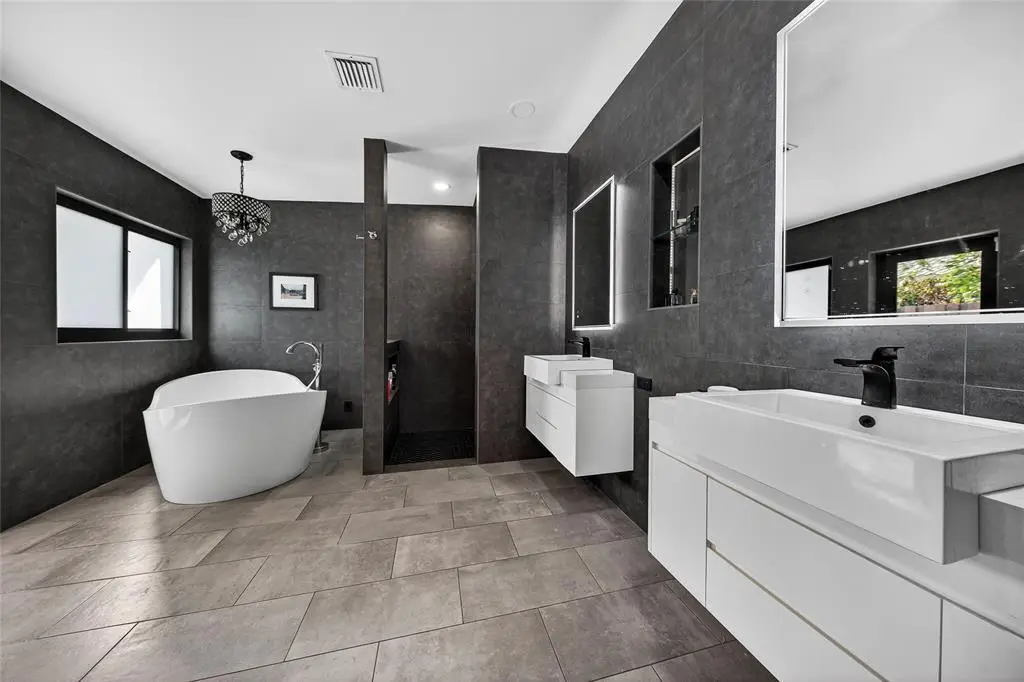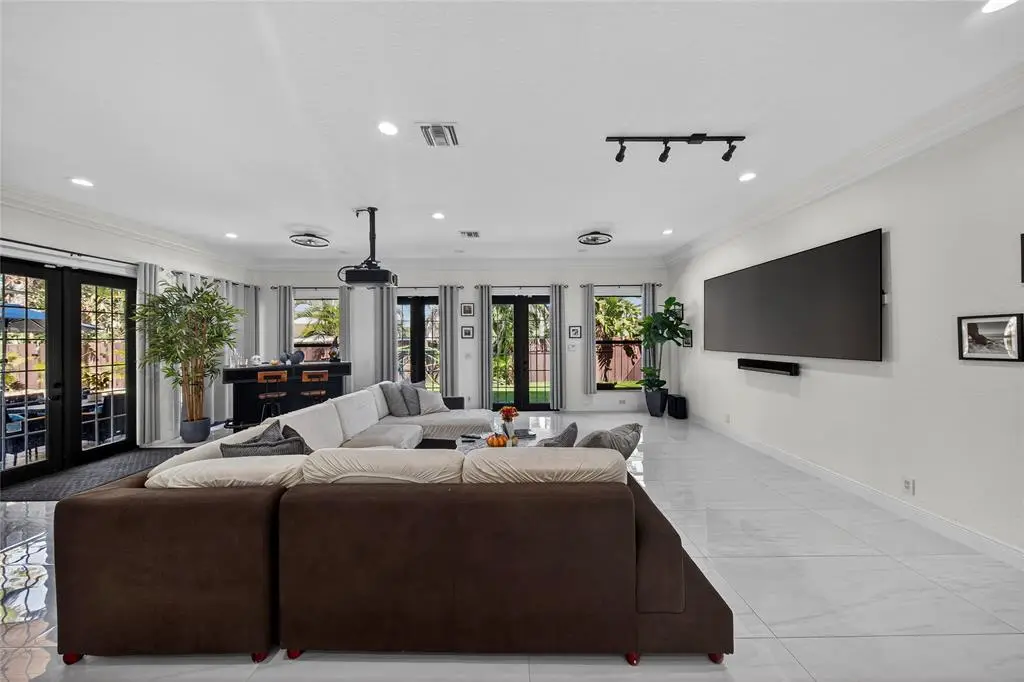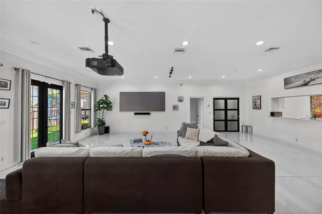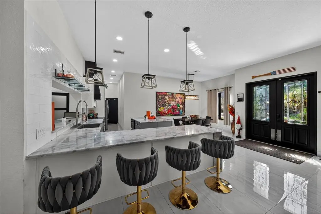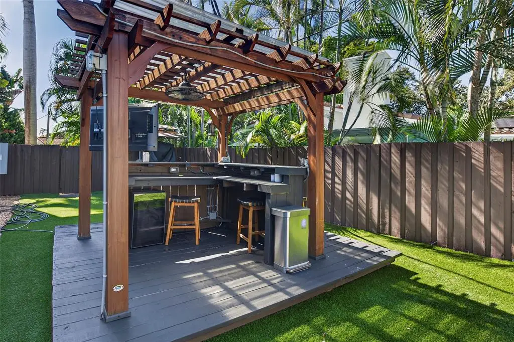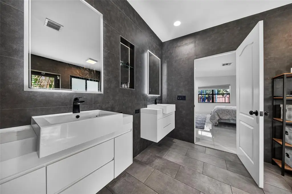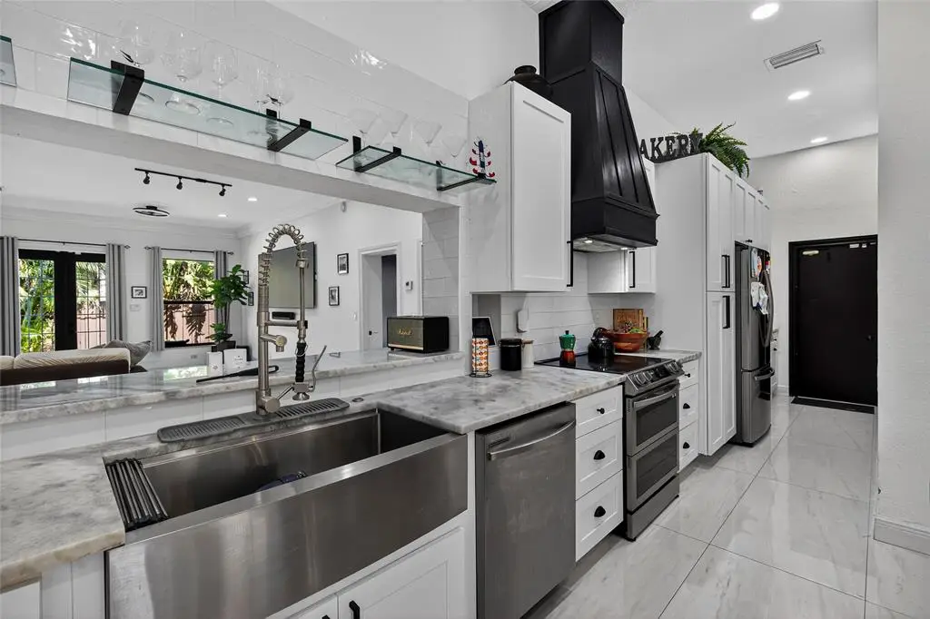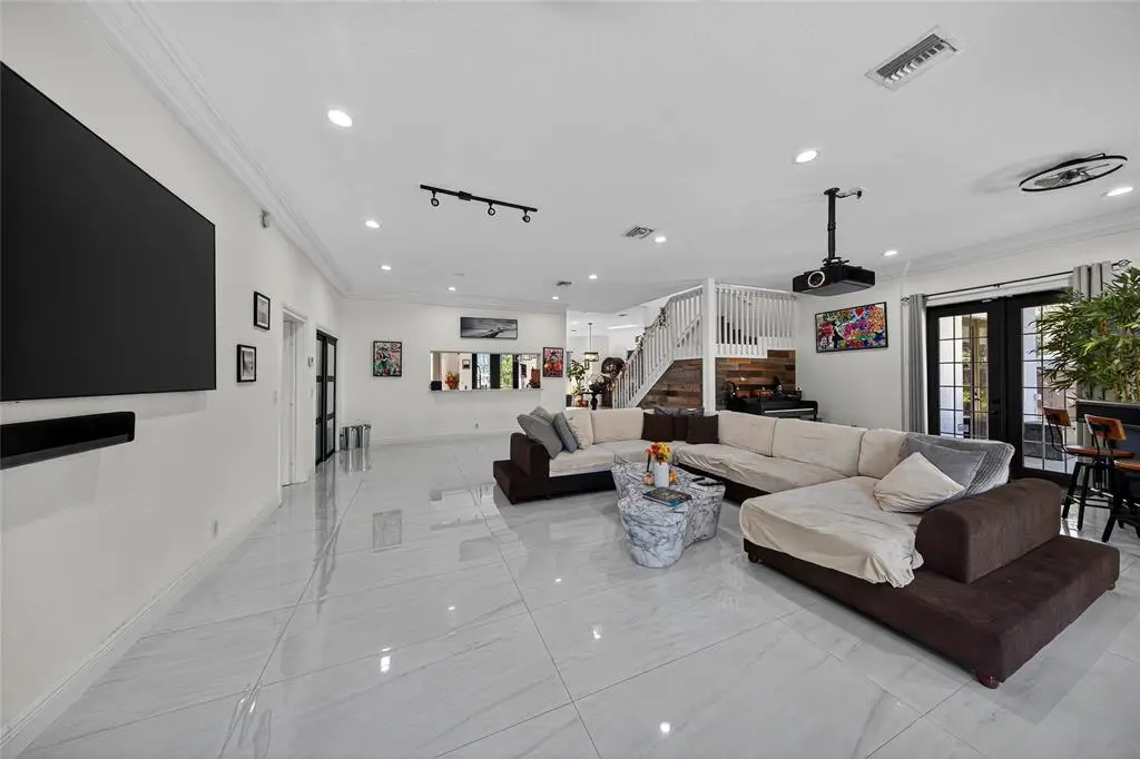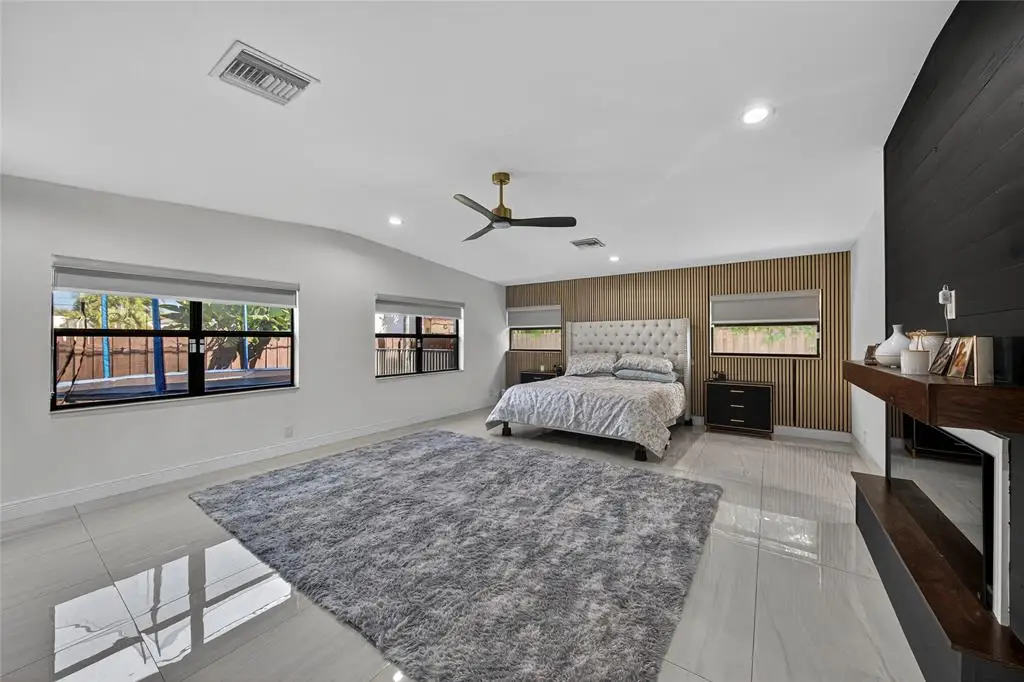 Spectacular renovated 6BD/6BA estate on an oversized lot just minutes from the beach! This modern home features a bright, open floor plan with an updated, first-floor primary suite, office, and junior suite on the main level plus three en-suite bedrooms, a loft, and a huge screened terrace upstairs. The bedrooms offer generous space, custom closets, and beautifully updated bathrooms. Impact windows fill the home with natural light throughout. The brand-new kitchen boasts white shaker cabinets, quartz counters, a center island with wine storage, a farmhouse sink, stainless steel appliances, and a wraparound breakfast bar. Enjoy entertaining in your private backyard oasis with a covered living area, tropical pool, and fully fenced yard — perfect for the South Florida lifestyle!