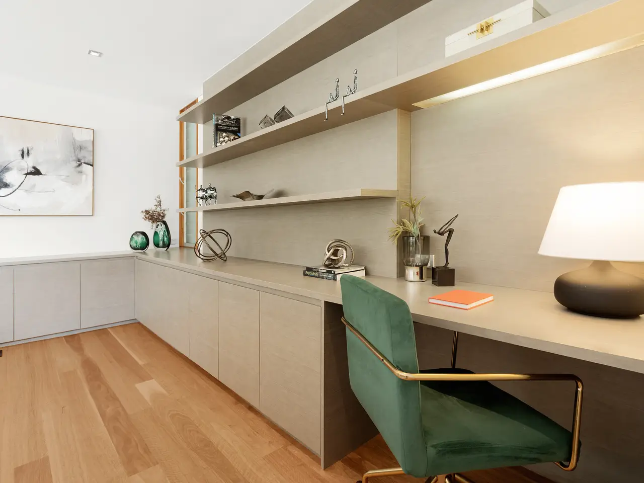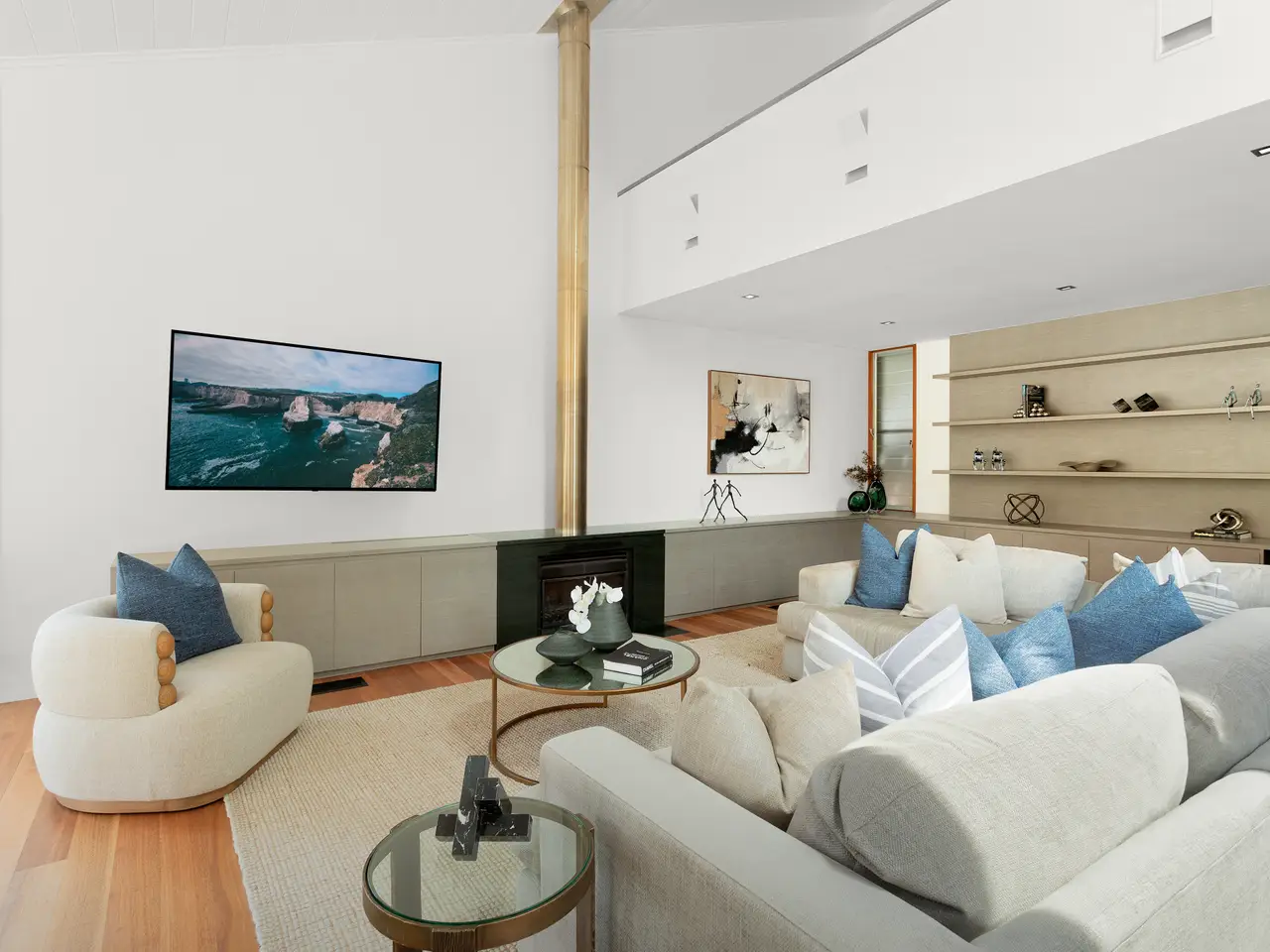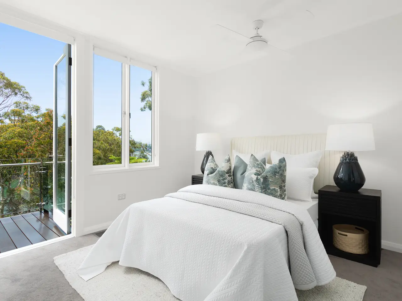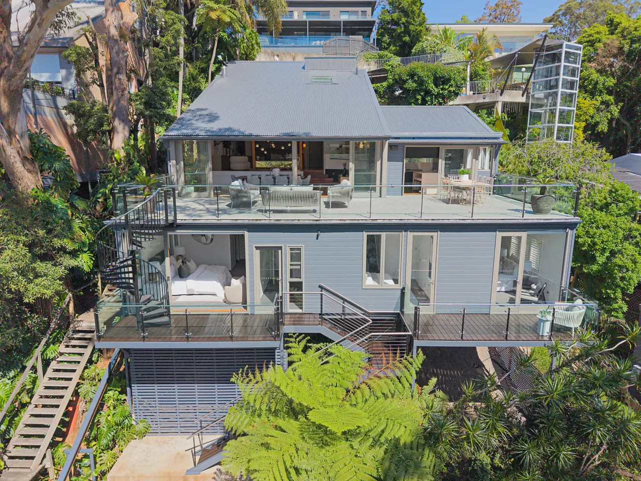 Positioned alongside the calming waters of Burns Bay, this architecturally reimagined family home on approx. 758sqm presents contemporary living with sweeping district and city views. With its multi-level layout, the home unfolds in layers of light and space, culminating in an expansive terrace that frames the bay and city skyline. A distinct sleeping floor enhances privacy, while its secluded position complete with guest house, set far below the street amid lush foliage, cultivates a rare sense of tranquillity in this blue-ribbon peninsula enclave. - Multiple living and dining spaces that merge the interiors with nature - Expansive entertainer's terrace with sweeping water and city views - Separate waterfront guest house footsteps to lawn, approved DA for slipway - Large bedrooms with built-ins and fans, master with walk-in robe - Gourmet gas kitchen with stone island and premium appliances - Chic baths including master ensuite and additional guest powder room - Zoned ducted air-conditioning, private inclinator for easy travel Auction commences 6.00pm at Belle Property Head Office 2A Phoenix Street, Lane Cove NSW 2066 Registrations from 5.30pm