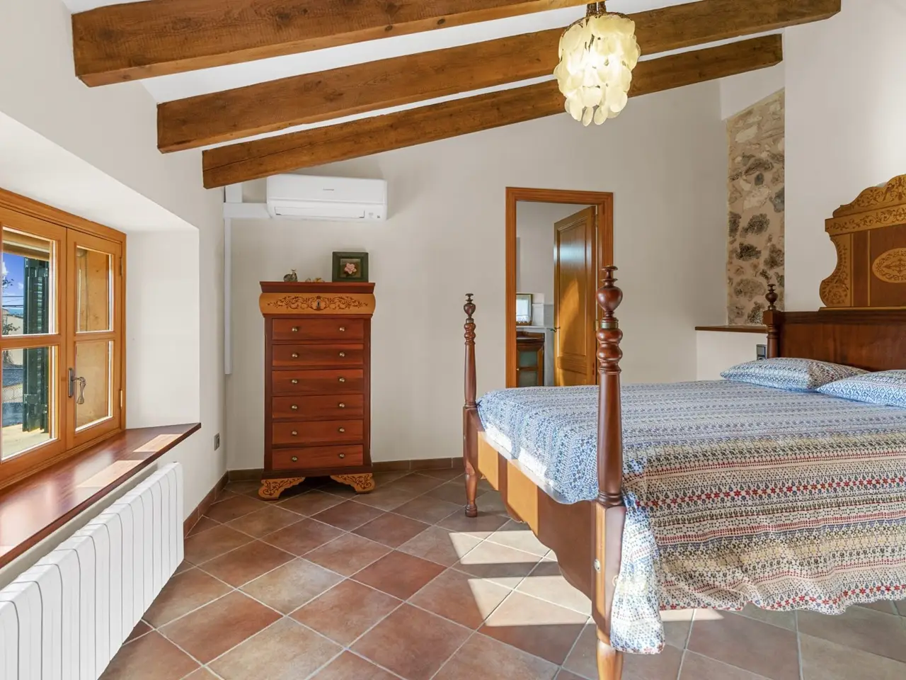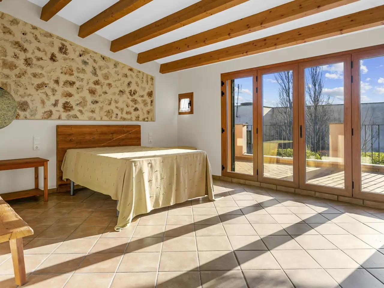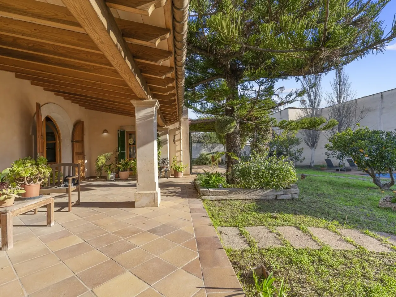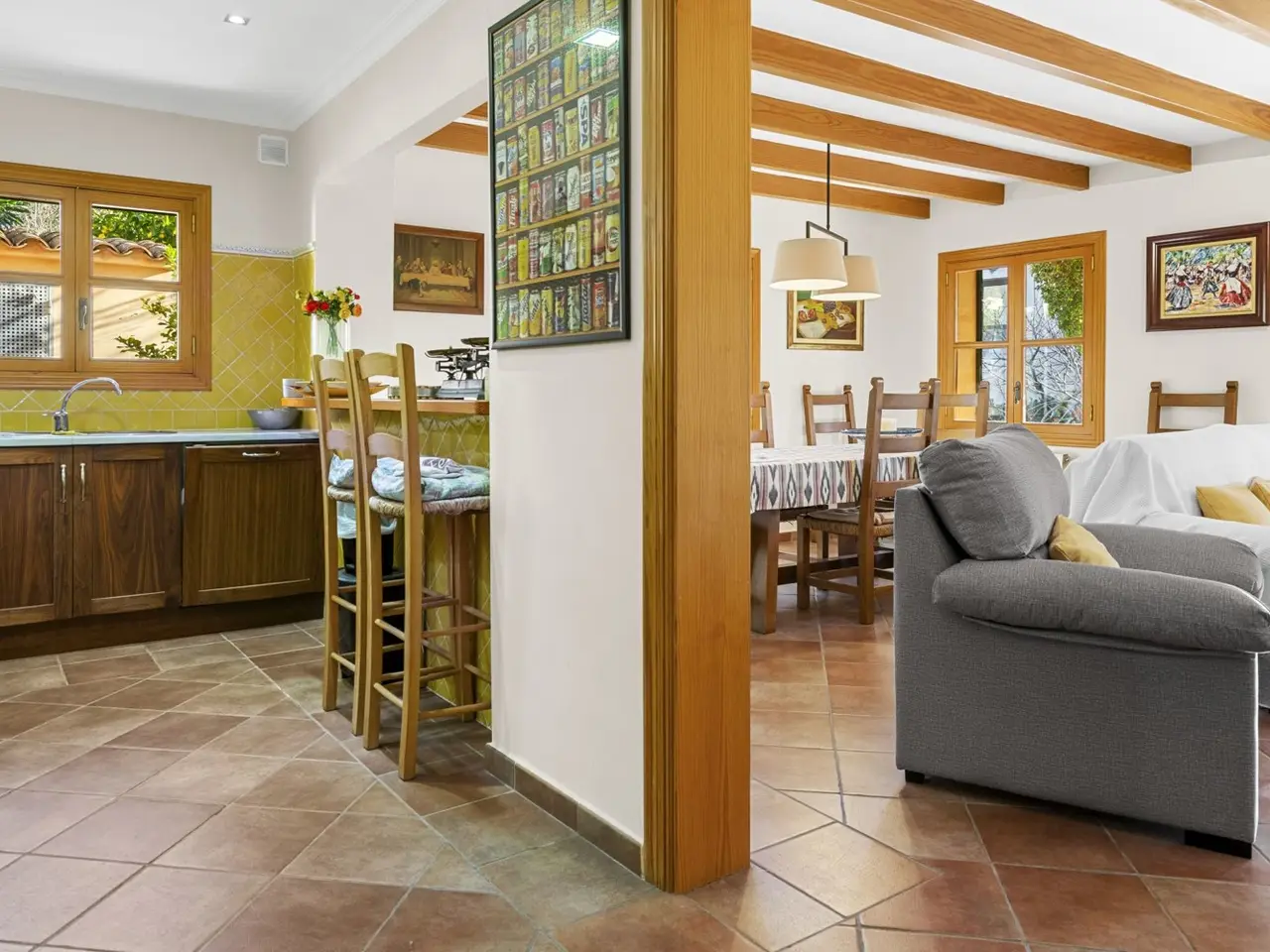 This traditional townhouse is located in the heart of the charming village of Llubí and offers a living space of approximately 183 m² on a spacious plot of approximately 713 square meters. Built in 1900 and modernized in 2004, the house is characterized by its well-kept condition and traditional design, which includes typical Mallorcan elements such as terracotta tiles, wooden beamed ceilings and natural stone walls. Upon entering the house, you cross the inviting entrance hall and enter the cozy living room, which is equipped with a fireplace and creates a warm and cozy atmosphere. On this floor there is a modern bathroom and a fully equipped fitted kitchen with breakfast bar, which flows seamlessly into the dining area. Adjacent is another living room, from which you have direct access to the covered terrace, the pool and the lovingly landscaped garden. This outdoor area is remarkable for a townhouse in the center of Llubí. Here you will find an outdoor barbecue with dining area, terraces as well as a well-tended lawn surrounded by shady trees and the pool. On the second floor there are two spacious bedrooms, each with its own en-suite bathroom. One of the bedrooms also offers access to a private terrace overlooking the idyllic garden. The property is equipped with central heating and air conditioning, which ensure a pleasant living climate. The location of the house is ideal for those looking for a quiet life in the village without having to sacrifice proximity to urban amenities. All important facilities such as stores and bars are within easy walking distance. In addition, the house is only about 20 minutes from the nearest beach and about 30 minutes from the airport and the capital Palma. Interested buyers are invited to arrange a viewing appointment to see the many advantages of this property for themselves. Features - Terracotta tiles, wooden beam ceiling, natural stone walls - Fireplace - Central heating with gas - Air conditioning - Pool with sunbathing area - Garden with native plants and trees - Outdoor barbecue and dining area - Terraces - Garage with space for 2 cars